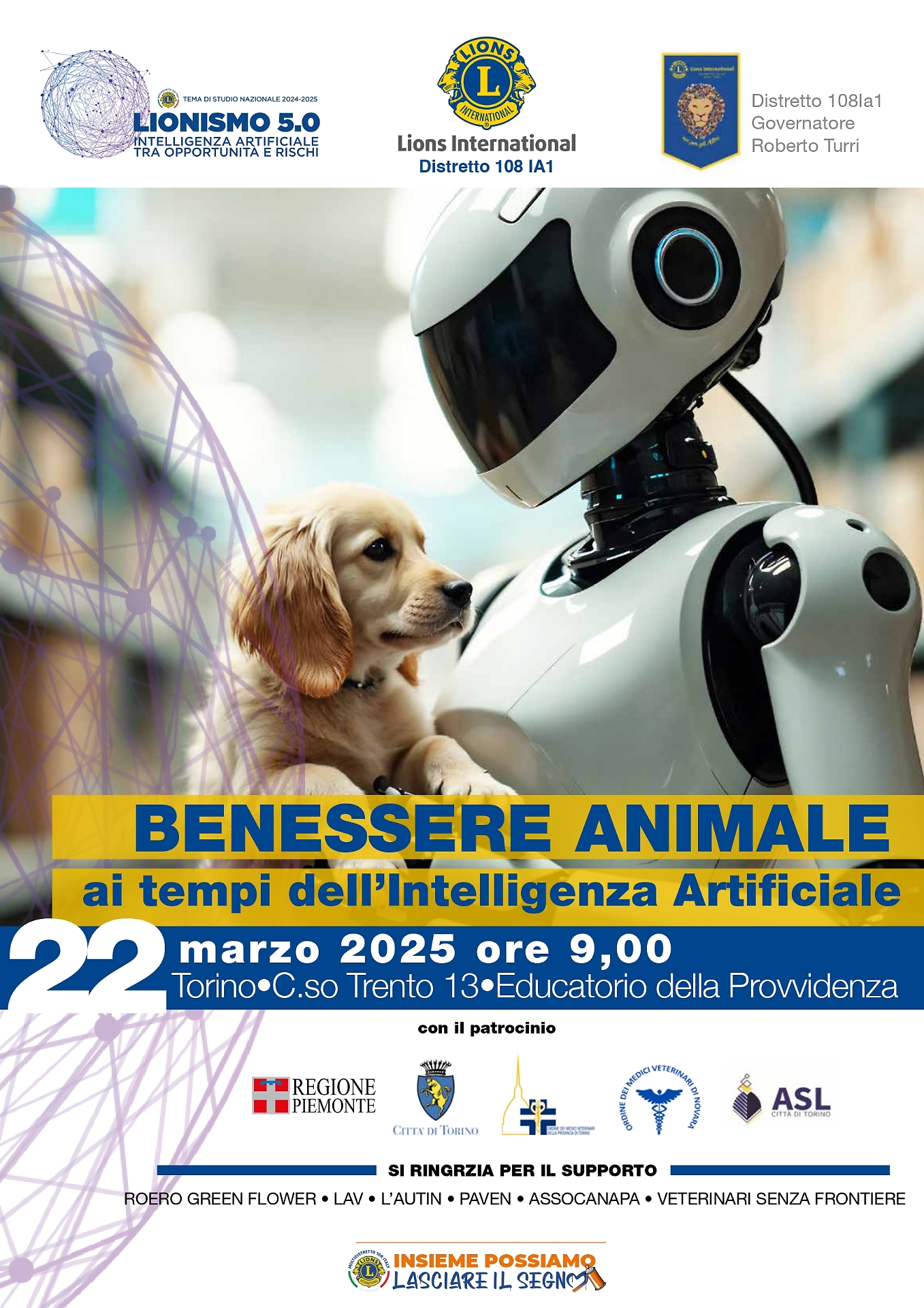Il convegno si inserisce nell’ambito del Tema di Studio Nazionale dei Lions “Intelligenza Artificiale tra Opportunità e Rischi” e offrirà spunti concreti su come la tecnologia possa garantire il benessere degli animali da compagnia, da reddito e selvatici.