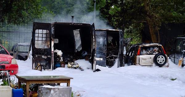 Il rogo si è sviluppato intorno alle 7 al civico 138, sede di una società di recupero veicoli e masserizie e ha coinvolto auto e furgoni parcheggiati nel cortile dell'azienda. Subito si è alzata un'alta colonna di fumo nero, ben visibile anche da diversi chilometri di distanza nonostante il cielo grigio di questa giornata più autunnale che estiva. La puzza di gomma e plastica bruciata ha ben presto invaso le strade, tanto da essere ben percepibile ancora poco fa fino nella zona del parco Dora. Sul posto, allertate dalle numerose telefonate al 112, sono intervenute diverse squadre dei vigili del fuoco del comando provinciale di Torino che, con l'ausilio di due autobotti, sono riuscite a circoscrivere le fiamme prima che si potessero ulteriormente allargare. In questo momento sono in corso le ultime operazioni di spegnimento. Impossibile per ora stabilire le cause del rogo, che potrebbe presumibilmente essere dovuto a un corto circuito di uno dei veicoli o essere di origine dolosa.