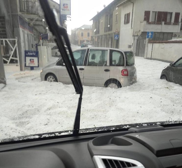 Le immagini della grandinata sulla provincia di Torino - Auto bloccate nel ghiaccio a Santena