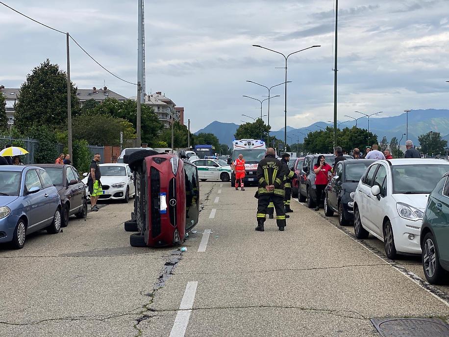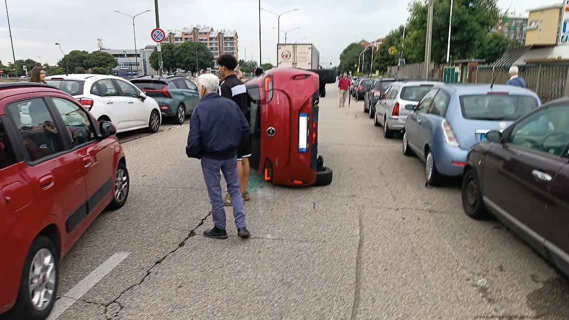 Paura per due ragazze coinvolte nell'incidente stradale avvenuto poco dopo le 10 di oggi nel controviale di corso Grosseto, all'altezza del civico 435 (di fronte allo stadio della Juventus): per cause ancora da accertare, secondo le prime ricostruzioni, la giovane conducente della Opel Corsa ha allargato la traiettoria, colpendo due auto parcheggiate e finendo per ribaltarsi sul fianco sinistro.