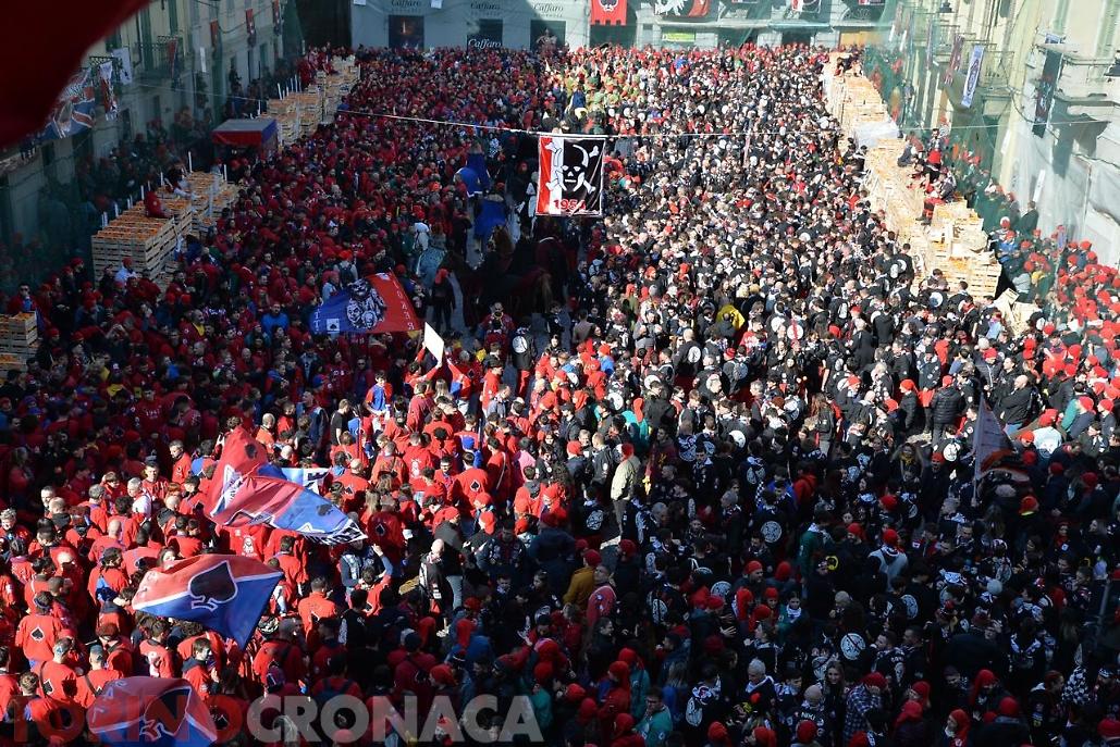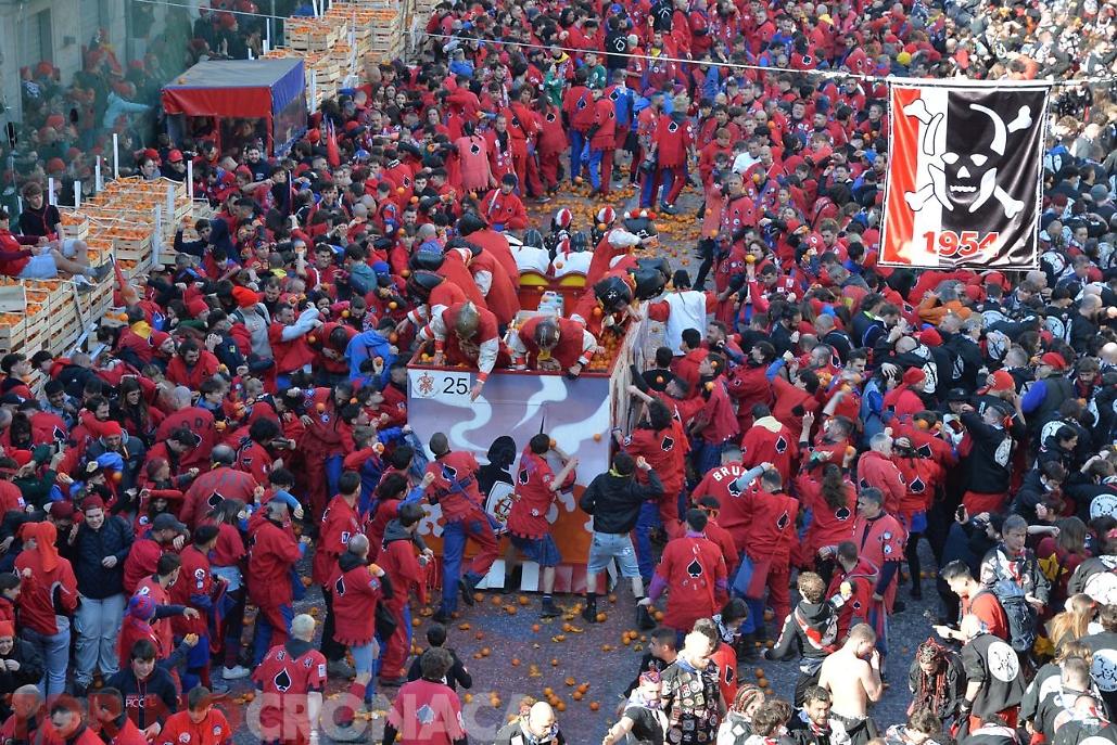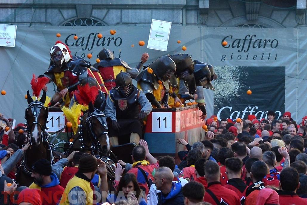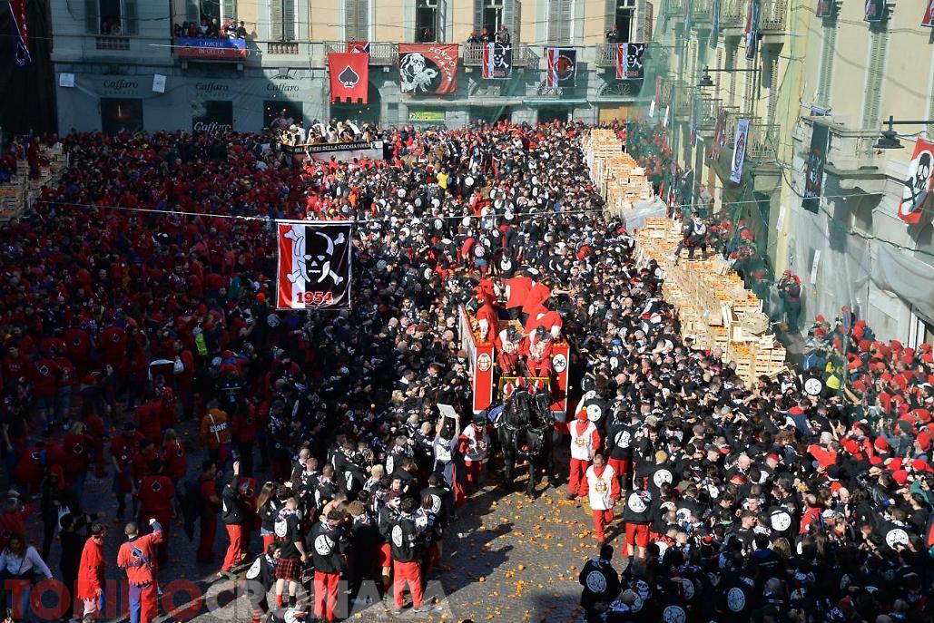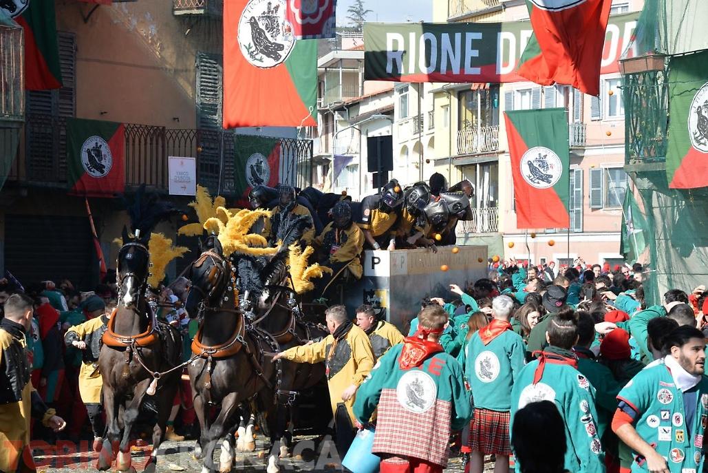 Battaglia che sarà replicata due volte. Domani, lunedì 3 marzo la seconda giornata di battaglia avrà inizio sempre ore 14 e fine alle 17. L’evento si concluderà martedì 4 marzo con l’ultima giornata, al termine della battaglia alle ore 18 premiazione delle squadre degli aranceri a piedi e dei carri da getto in Piazza di Città. Alle 20.15 partenza del corteo storico ed abbruciamento degli Scarli nelle Parrocchie di San Maurizio, Sant'Ulderico e San Lorenzo, San Salvatore e San Grato. Alle 22.45 da Piazza Lamarmora si intona la “funerala” il canto funebre conclusivo e il tradizionale saluto "Arvedze a Giobia 'n bot" in Piazza Ottinetti che segna la fine ufficiale della manifestazione.