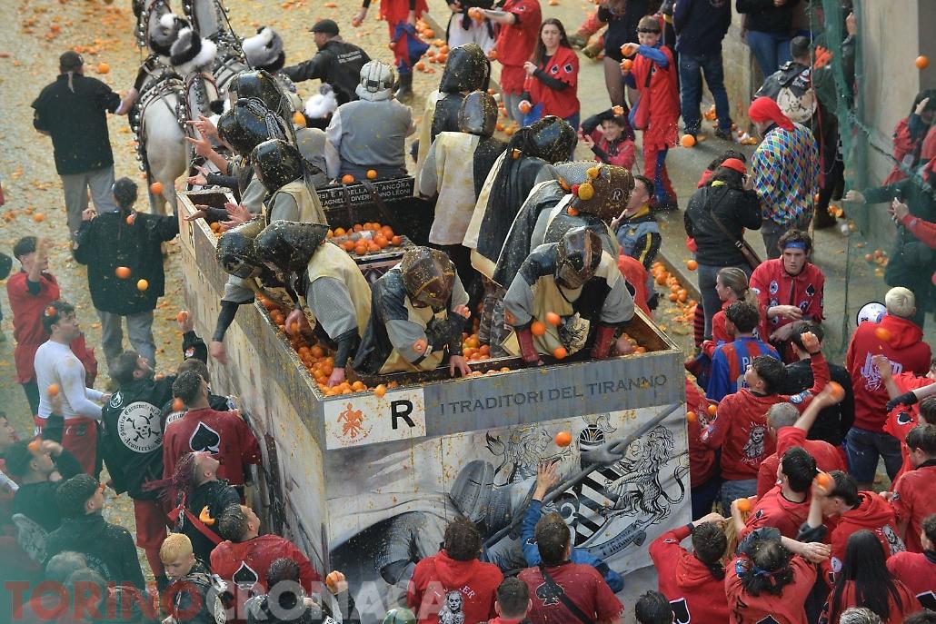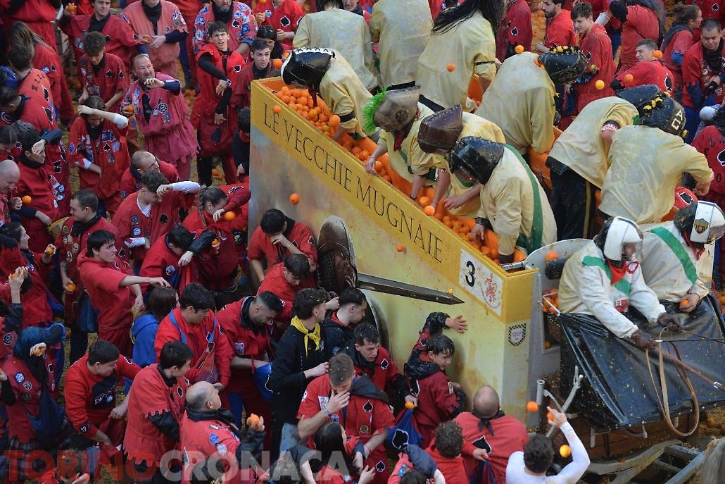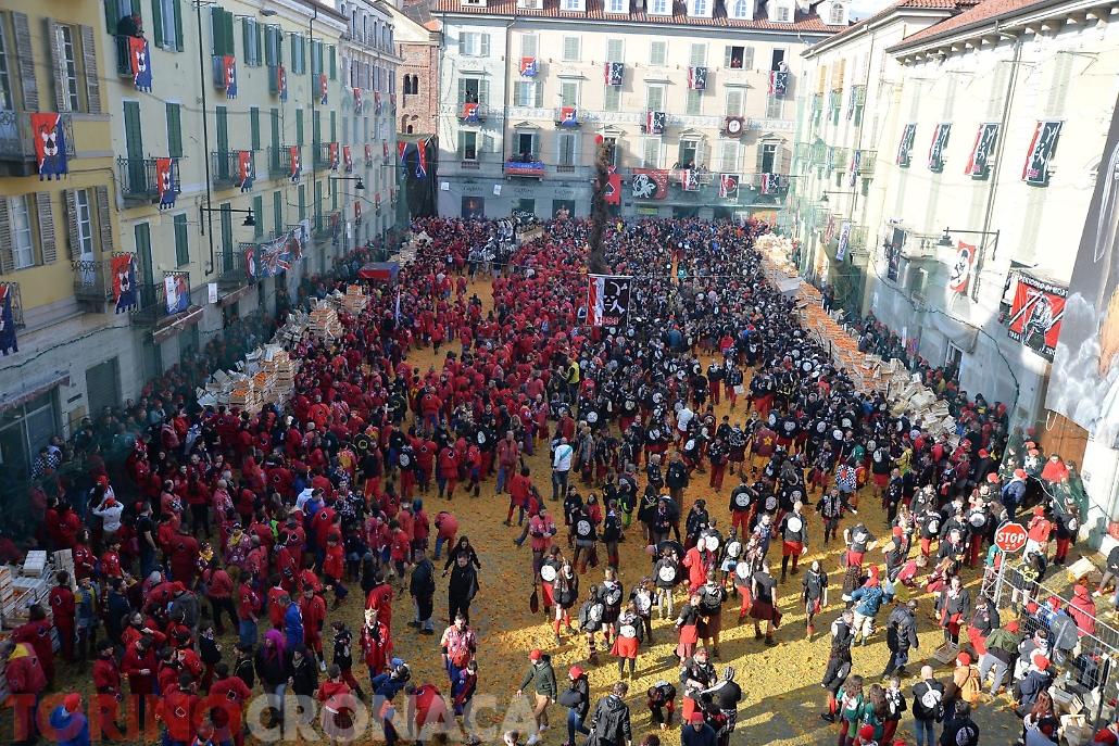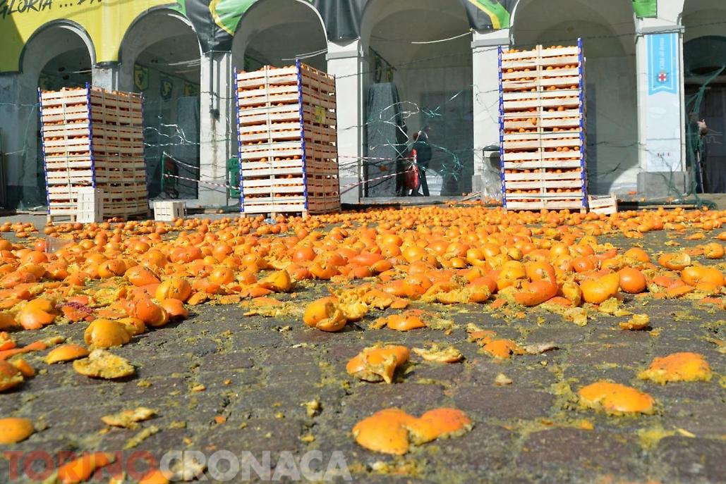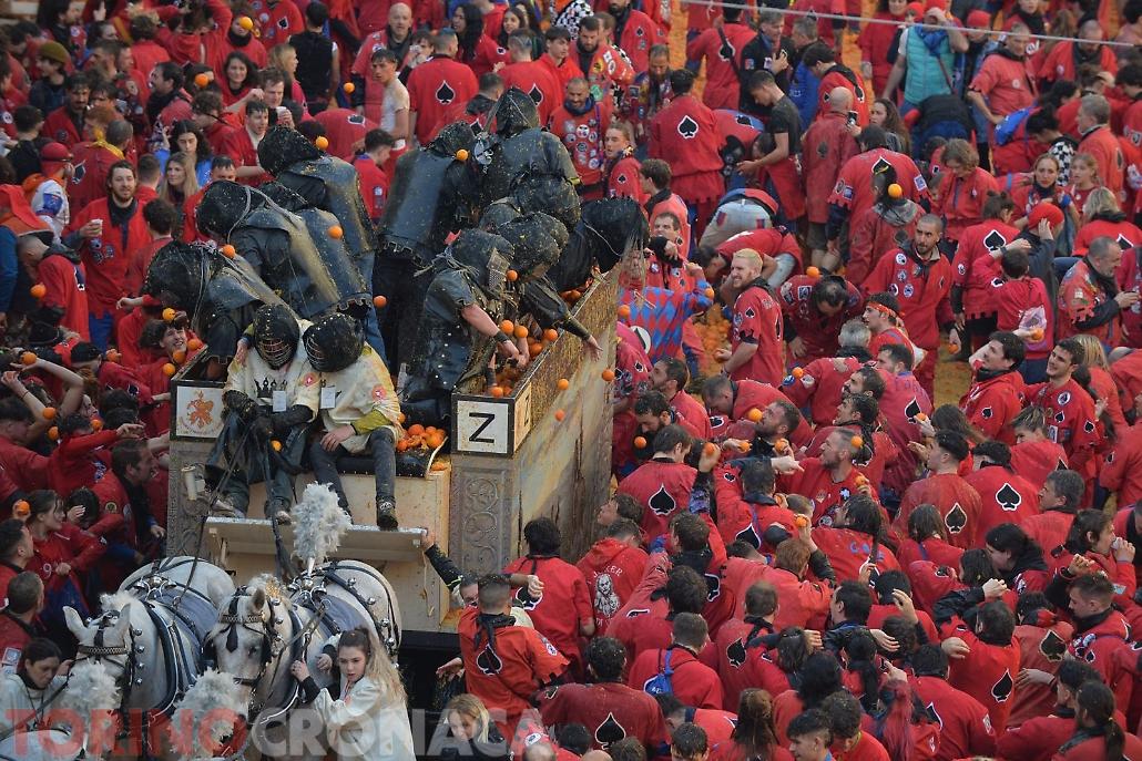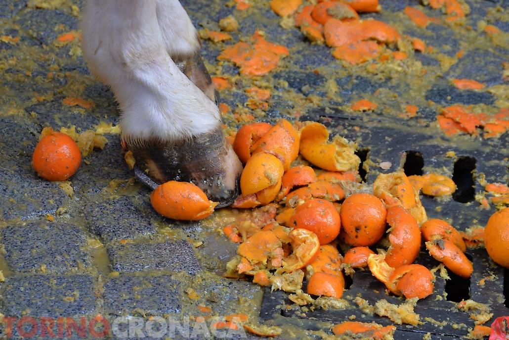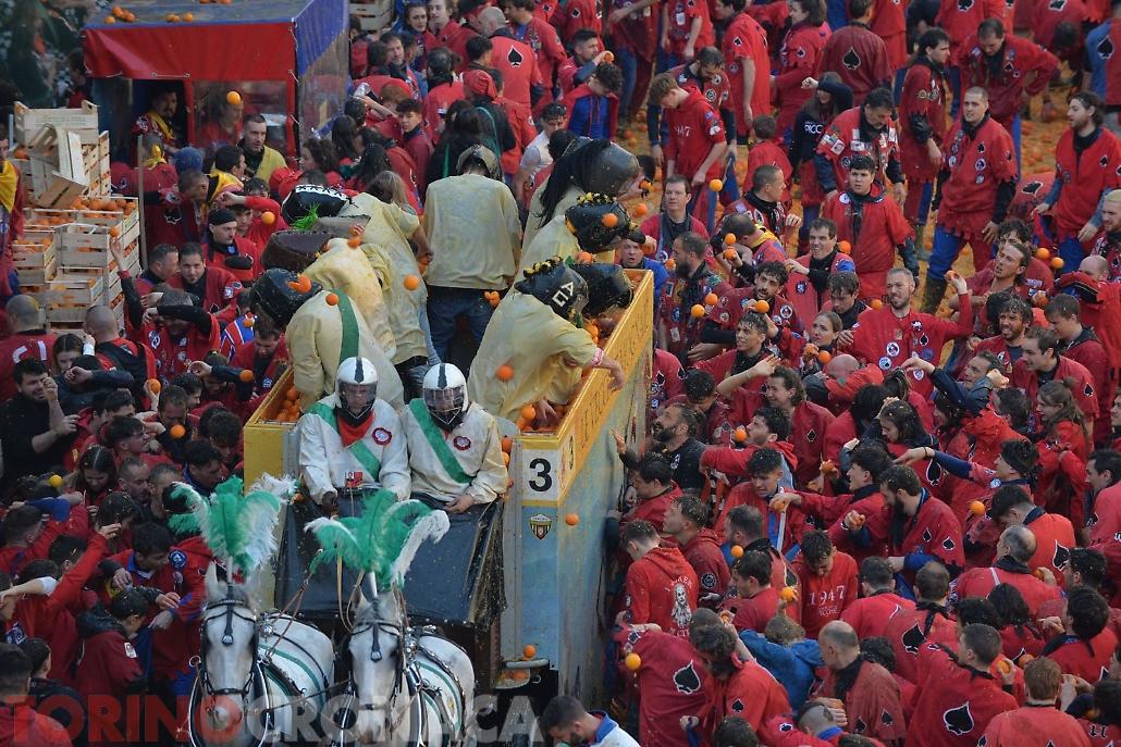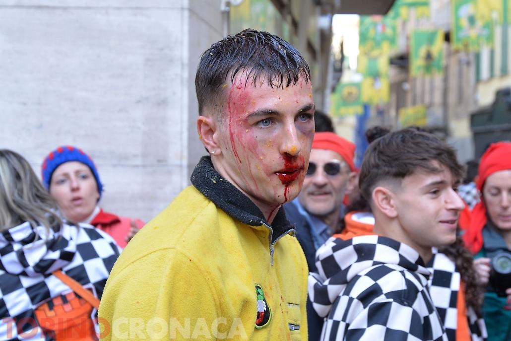 Nasi sanguinanti, occhi neri ma tanti sorrisi. E' finita poco fa, a Ivrea, l'ultima Battaglia delle arance dell'edizione 2025 dello Storico Carnevale. Migliaia di persone, come sempre, hanno affollato strade e piazze per l'ultima giornata e la seguente premiazione del vincitore, dandosi appuntamento per il prossimo anno, quando le arance torneranno a volare e a colpire occhi e nasi.