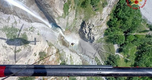 I due uomini erano bloccati nella parte inferiore delle cascate del Rio Claretto. Raggiungerli via terra avrebbe richiesto molto tempo e grandi sforzi e così i pompieri hanno optato per l'intervento dall'alto. Da molto alto. Infatti chi si è calato ha raggiunto i 75 metri, che è anche la portata massima del verricello di bordo: impossibile scendere da un'altezza maggiore. Per fortuna tutto è finito bene: i due escursionisti, spaventati ma incolumi, sono stati portati a bordo e poi consegnati alla squadra 91 di Susa che da terra faceva assistenza.