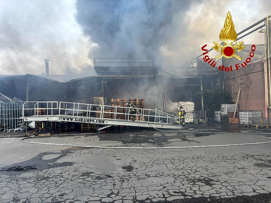 Fiamme in un’area industriale domate dopo ore di intervento. Nessun ferito, in corso accertamenti sulle cause dell’incendio