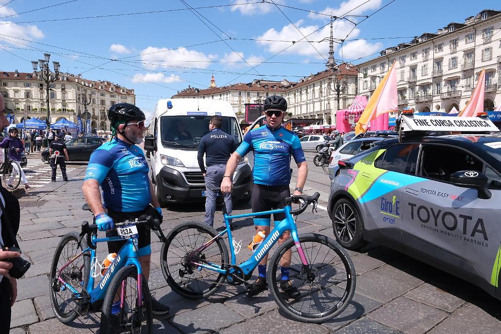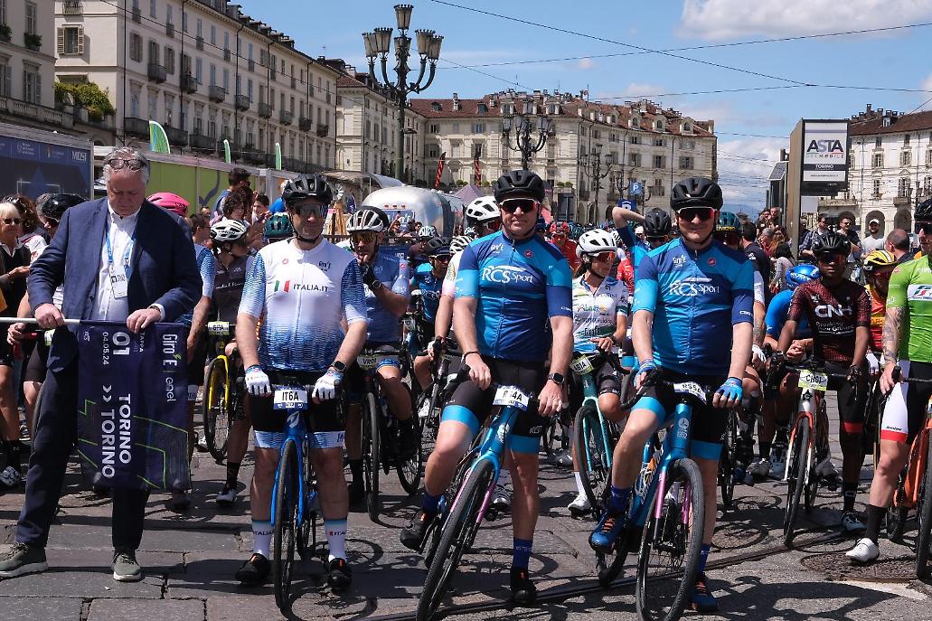 Una festa, quella della Corsa Rosa, che ha coinvolto il cuore del centro cittadino torinese. Anche lungo le strade di tutta la collina torinese, i tifosi - molti con sciarpe e maglie granata in onore del Grande Torino - hanno voluto abbracciare e vedere da vicini i loro beniamini. Tutto è cominciato fin dal mattino, con il via anche al Giro-E Enel, strettamente connesso alla Corsa Rosa. Un modo per dimostrare che la mobilità elettrica funziona veramente ed è anche alla portata di tutti con le e-bike che sono in grado di girare in città ma di affrontare anche le salite senza nessun problema. La prima tappa, una trentina di Km sul percorso finale di quella vera, prevedeva anche la scalata al Colle della Maddalena, dopo la partenza da piazza Vittorio che ha richiamato moltissime persone. In mezzo ai partecipanti, anche diversi campioni di altri sport, a cominciare da quelli invernali. In ordine sparso, l’ex slalomista azzurro Giorgio Rocca e il veterano Christof Innerhofer ma anche la biathleta Dorothea Wierer, i campioni di short track Arianna Valcepina e Pietro Sighel, i canottieri Simone Venier e Alessio Sartori in mezzo ad un gruppo omogeneo. Applausi per tutti e replica con la seconda tappa già oggi che partirà da Valdengo, nel Biellese, per concludersi sul traguardo di Oropa.