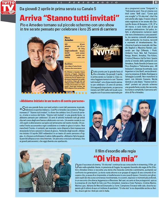 Pio e Amedeo tornano su Canale 5 per festeggiare i loro 25 anni di carriera e non saranno soli. "Pio e Amedeo - Stanno tutti invitati" andrà in onda dal 2 aprile per tre su Canale 5 e in streaming su Mediaset Infinity.