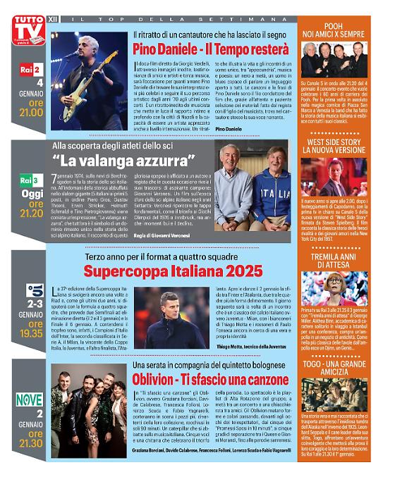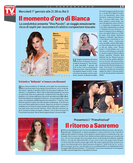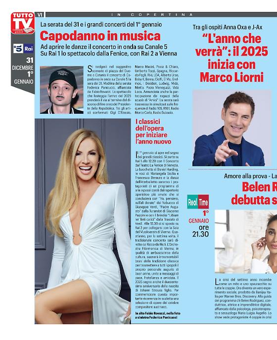 La settimana di transizione tra il vecchio e il nuovo anno parte oggi, lunedì 30 dicembre. Tutto pronto in televisione per gli ultimi programmi del 2024 e i primi del 2025. La Rai, come da tradizione, partirà con il concerto di Capodanno, concerto con il quale si potrà fare un "brindisi" televisivo ben augurante. Intanto si è appena concluso, "Ballando con le Stelle", ma continua la eco della trasmissione televisiva condotta il sabato sera da Milly Carlucci. In particolar modo, al centro dell'attenzione mediatica, c'è la vincitrice dell'ultima edizione, Bianca Guaccero, che oltre a vincere il programma del sabato sera è stata chiamata da Carlo Conti per condurre il "PrimaFestival" di Sanremo.