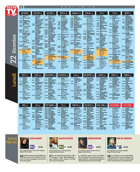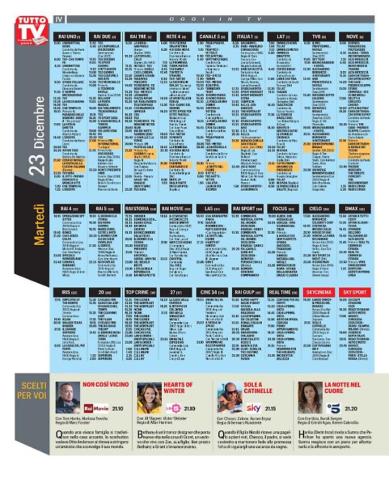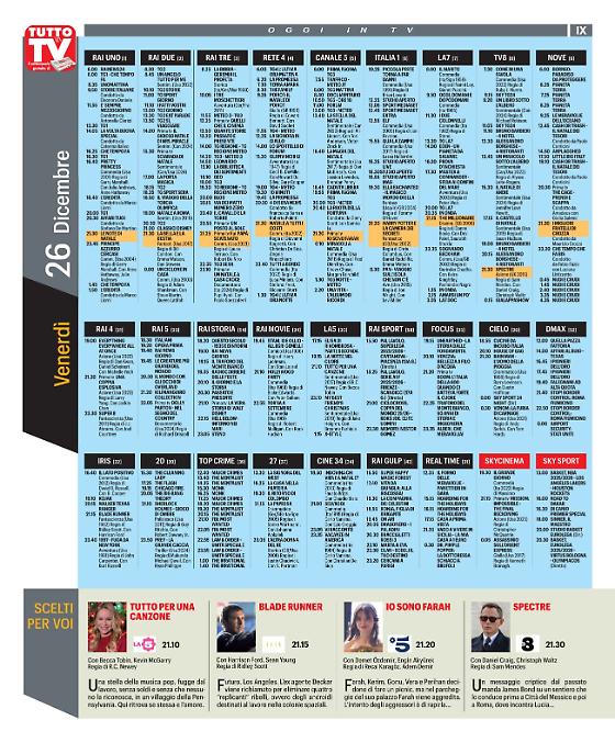TUTTO IN TV: Ecco cosa vedremo in Tv dal 22 al 28 dicembre