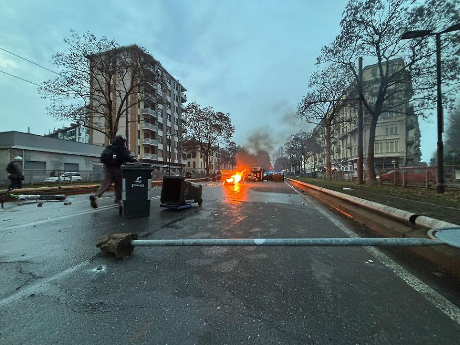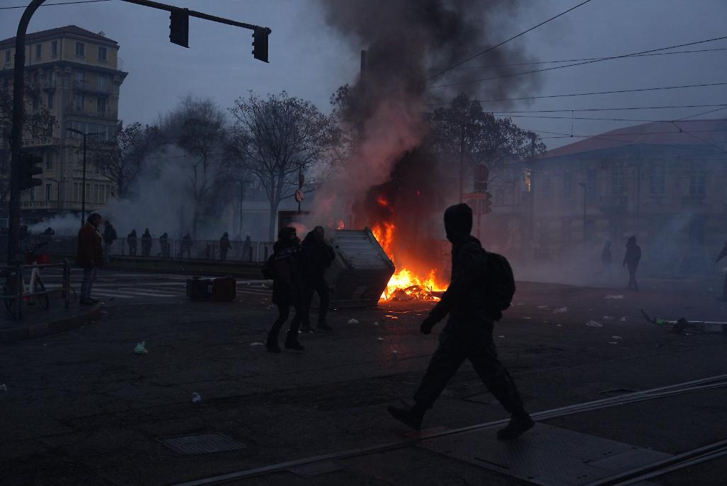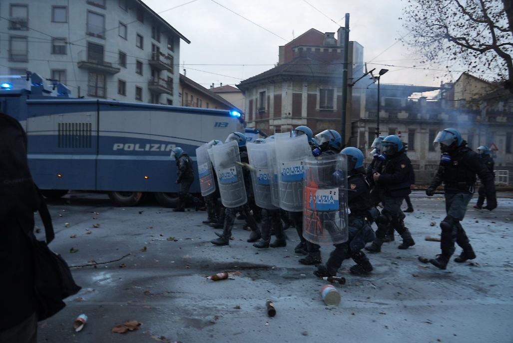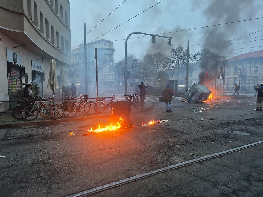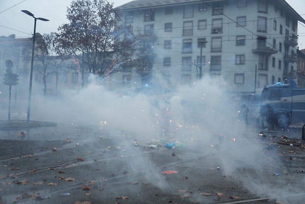 Corso Regina Margherita, a poche decine di metri dal centro sociale Askatasuna sgomberato e presidiato, trasformata in un campo di battaglia dai manifestanti. Cassonetti usati come barricate e dati alle fiamme, razzi lanciati contro la polizia, scontri e violenze, con le forze dell'ordine costrette a usare gli idranti.
