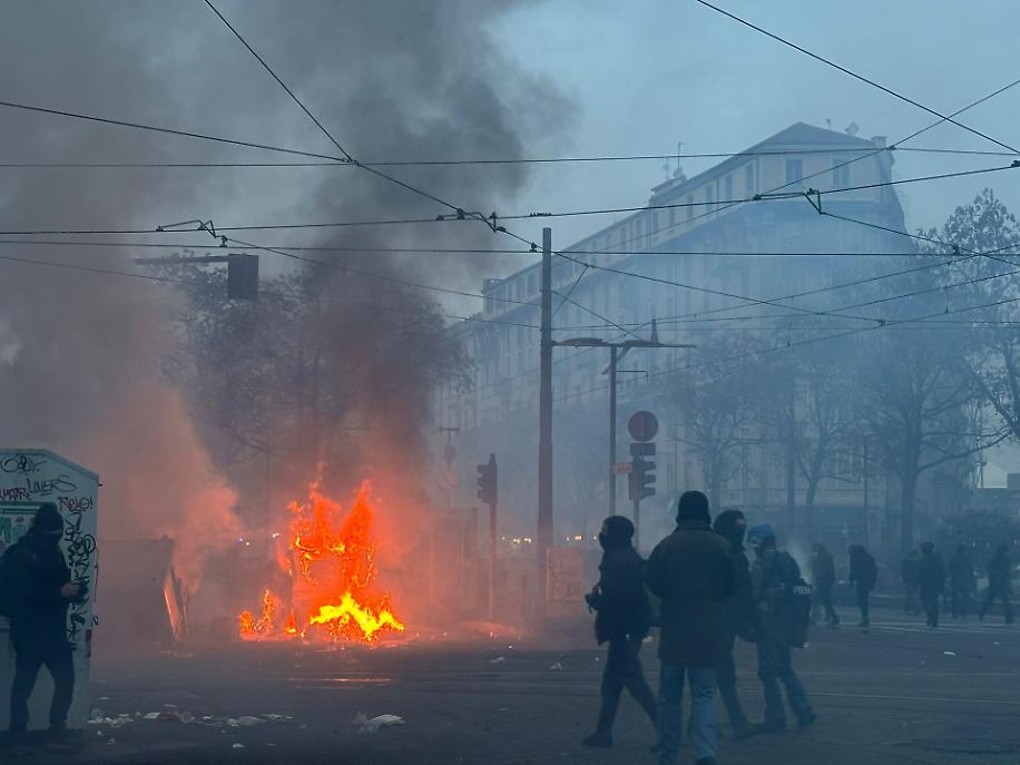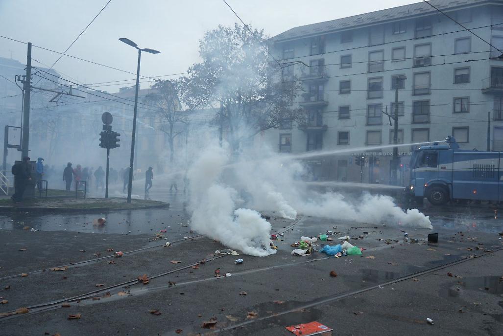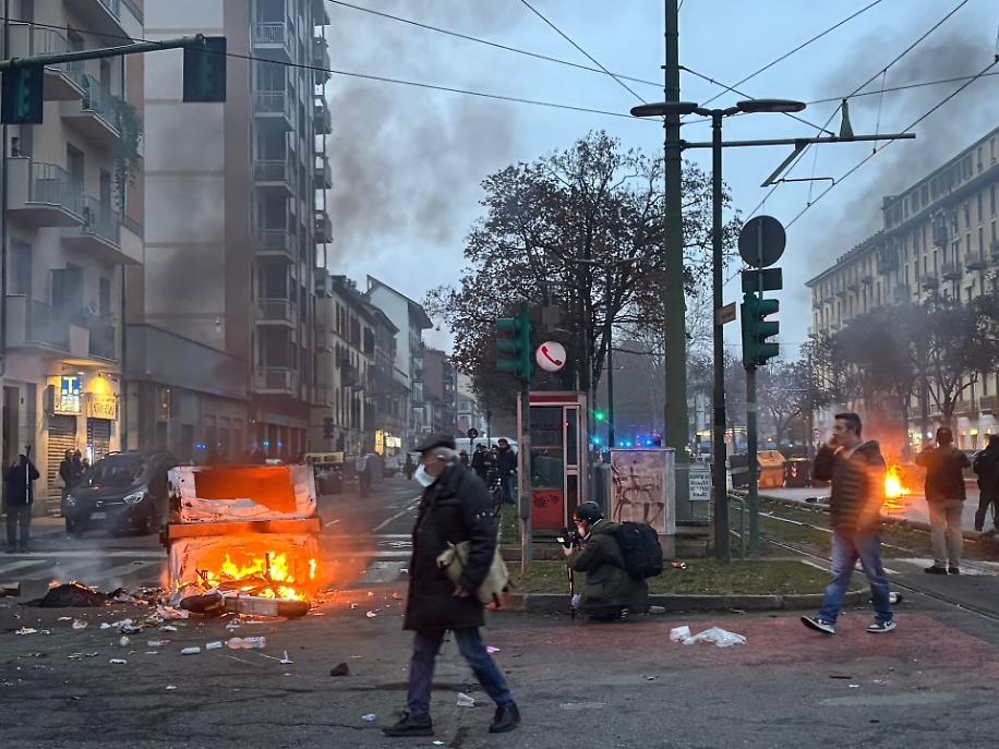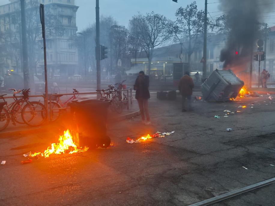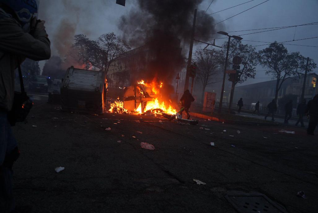 Corso Regina Margherita, a poche decine di metri dal centro sociale Askatasuna sgomberato e presidiato, trasformata in un campo di battaglia dai manifestanti. Cassonetti usati come barricate e dati alle fiamme, razzi lanciati contro la polizia, scontri e violenze, con le forze dell'ordine costrette a usare gli idranti.
