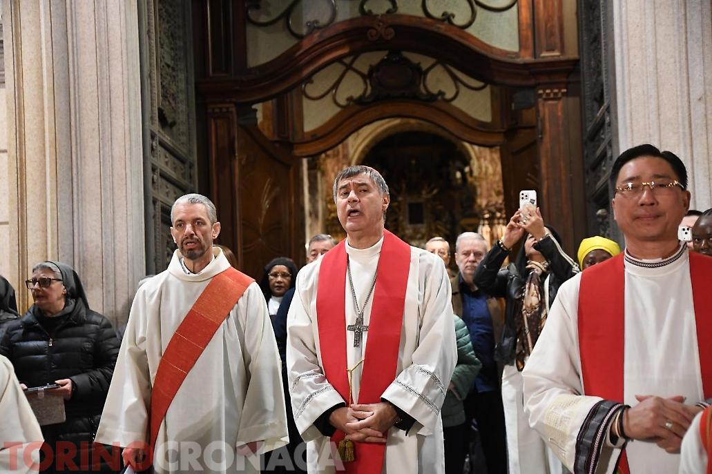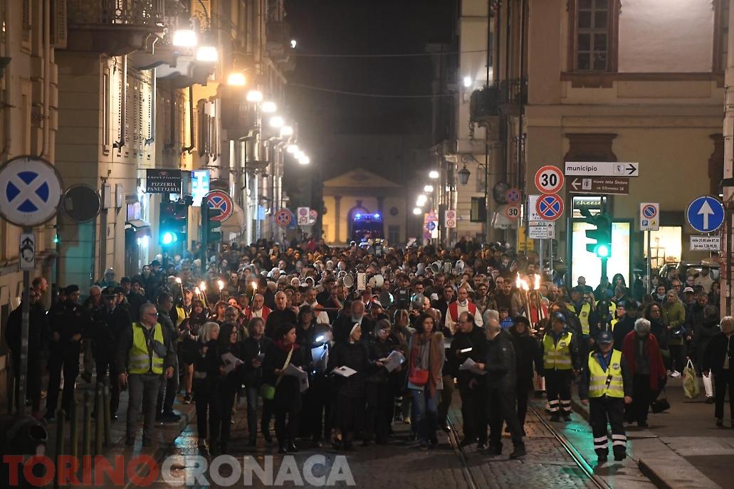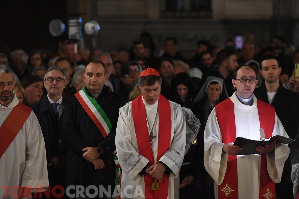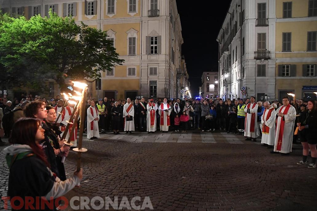 Guidate dal cardinale Roberto Repole, arcivescovo di Torino e vescovo di Susa, centinaia di persone stanno partecipando alla celebrazione partita alle ore 21 dal santuario della Consolata che terminerà in Cattedrale dopo aver percorso via della Consolata, piazza Savoia, via Garibaldi e via XX Settembre. Lungo il tragitto sono in programma diverse soste in luoghi simbolici della città: dal piazzale della Consolata, passando per piazza Savoia e i sagrati delle chiese di San Dalmazzo, dei Santi Martiri e della Santissima Trinità, fino ad arrivare al sagrato e poi all’interno della Cattedrale.