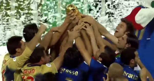 2006 Trionfo dell’Italia ai mondiali di calcio: è il quarto titolo consecutivo vinto dalla nazionale italiana. La partita finale si svolse a Berlino: l’Italia sconfisse la Francia per 6-4 dopo i calci di rigore. L’ultimo titolo per l’Italia era stato vinto nel 1982 ai mondiali di Spagna. (foto: YouTube - FIFATV)