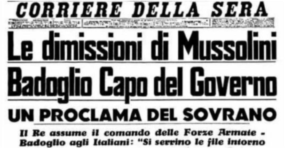 Tre proclami furono letti quel giorno agli italiani. Questo è quello di Badoglio: “Italiani! Per ordine di Sua Maestà il Re e Imperatore assumo il Governo militare del Paese, con pieni poteri. La guerra continua. L’Italia, duramente colpita nelle sue provincie invase, nelle sue città distrutte, mantiene fede alla parola data, gelosa custode delle sue millenarie tradizioni. Si serrino le file attorno a Sua Maestà il Re e Imperatore, immagine vivente della Patria, esempio per tutti. La consegna ricevuta è chiara e precisa: sarà scrupolosamente eseguita, e chiunque si illuda di poterne intralciare il normale svolgimento, o tenti turbare l’ordine pubblico, sarà inesorabilmente colpito. Viva l’Italia. Viva il Re”.