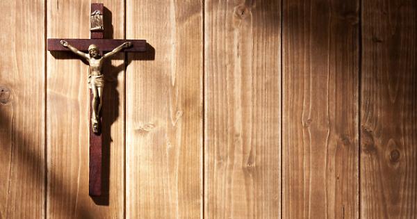 Suffering of Jesus Christ on the wooden wall. With shadows from a window frame.