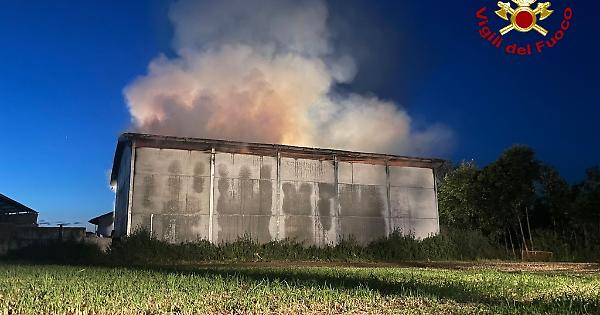 Pauroso incendio e intervento delle squadre dei vigili del fuoco di Torino, Pinerolo e dei volontari di Carmagnola per un rogo divampato nella notte in frazione San Giovanni a Villafranca Piemonte. Le fiamme hanno bruciato decine di rotoballe di fieno e distrutto un capannone di 100 metri quadri, tre trattori, un rimorchio e una imballatrice.