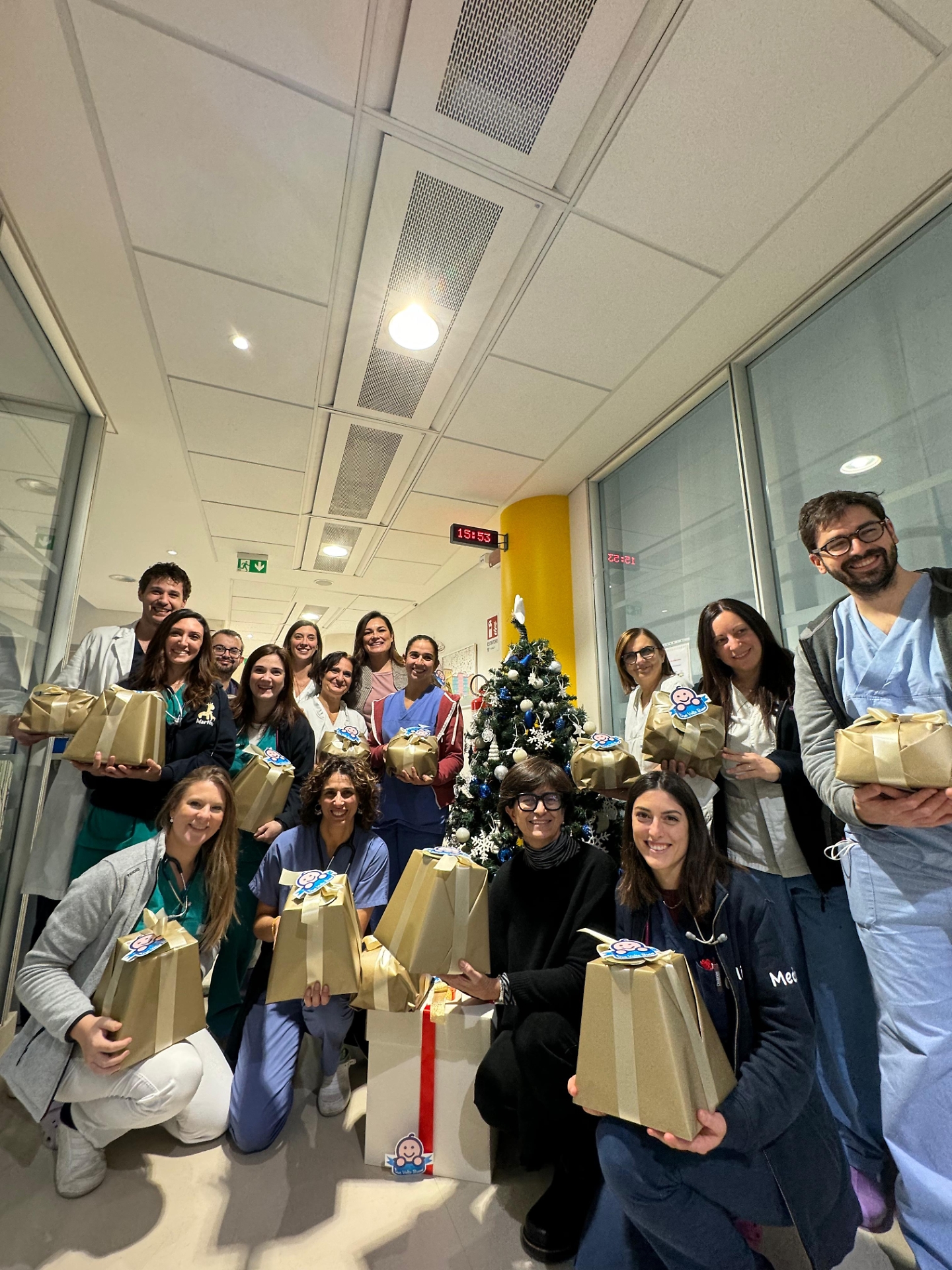 Accanto alla madrina Alena Seredova, Piero Boccalatte presidente onorario Crai e Daniele Farina Vicepresidente Fondazione Crescere Insieme Onlus e tanti medici e infermieri del Sant'Anna