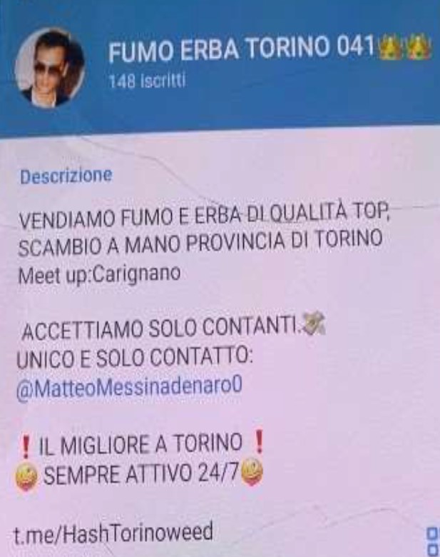 La Guardia di Finanza di Torino ha arrestato due cittadini italiani, un 50enne ed un 17enne, che vendevano sostanze stupefacenti grazie ad annunci pubblicati attraverso canali Telegram.