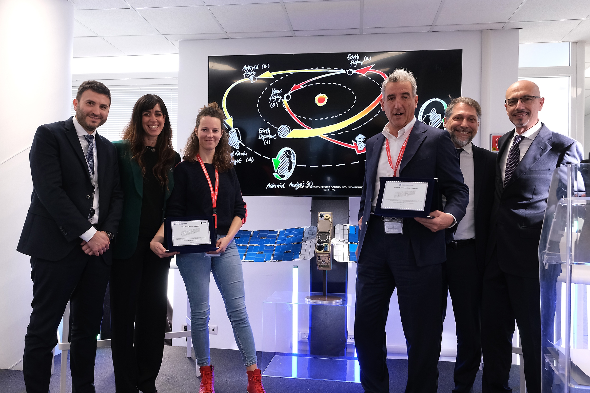 Durante l'incontro è stata consegnata una targa ad Alice Milani, figlia dell'astrofisico Andrea Milani scomparso nel 2018 a cui è stato dedicato il nanosatellite Tyvak.