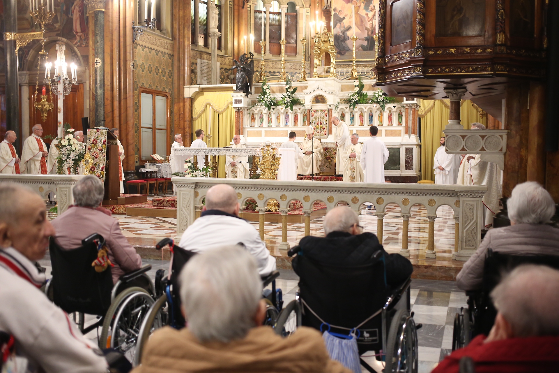Gli anziani, le suore in coro, le infermiere, i fedeli e tra le carrozzine dei malati in prima fila davanti all'altare, c'erano anche il sindaco di Torino, Stefano Lo Russo, con la fascia tricolore, e il presidente della Regione, Alberto Cirio, in completo blu. E' stata una celebrazione eucaristica in pompa magna quella tenuta questa mattina dall'arcivescovo Roberto Repole nella chiesa della Piccola Casa della Divina Provvidenza per festeggiare i 90 anni della canonizzazione di San Giuseppe Benedetto Cottolengo. Uno dei santi sociali di Torino, giudicato "gigante della carità" da Papa Pio XI, e fondatore della Piccola Casa che da tanti anni aiuta anziani e bisognosi. Attualmente sono circa 420 le persone ospitate, a fronte di un invecchiamento della popolazione di Torino e una difficoltà nel reperimento del personale.