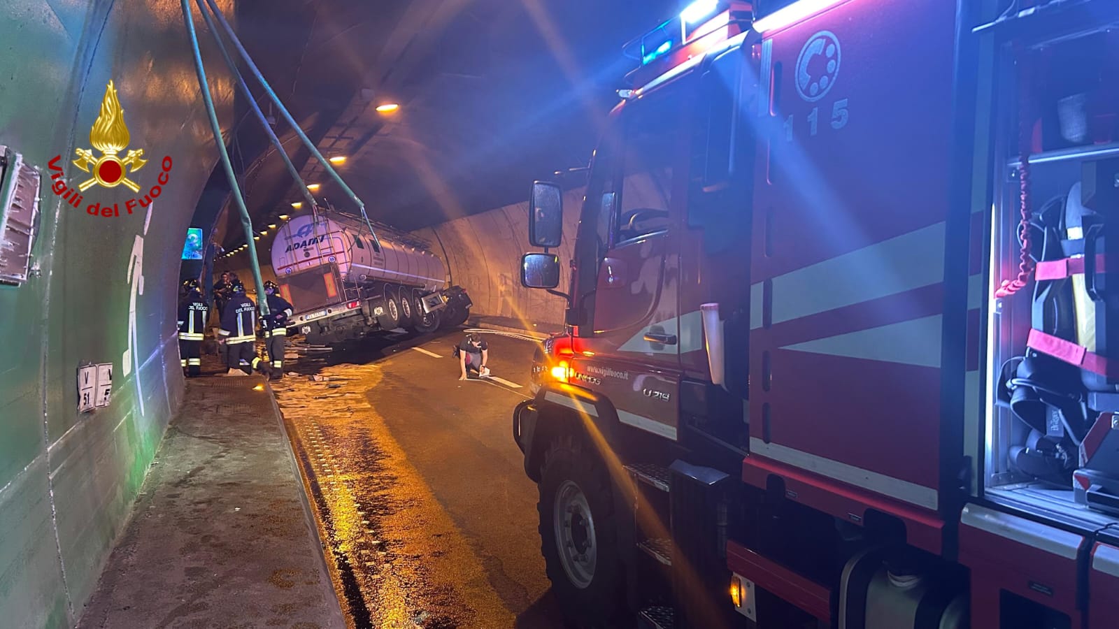 L'incidente del Tir nella nella galleria Cels. Sul posto i pompieri