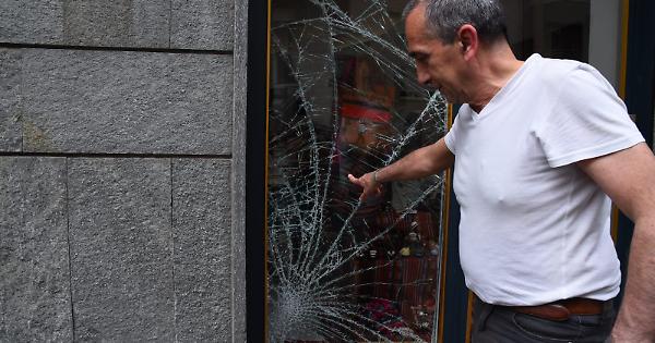 Luca Nicolotti, titolare della Belgravia, mostra la vetrina spaccata