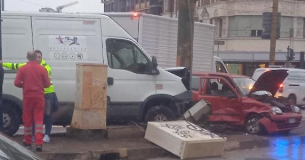 Un incidente, i cavi del tram tranciati e il traffico in tilt nel tardo pomeriggio di oggi, giovedì 26 settembre, al Rondò Rivella, dove si incrociano corso Regina Margherita, il sottopasso Repubblica, corso San Maurizio e corso Regio Parco. Si sono scontrati una Fiat 600 e un furgone Fiat Ducato (come si vede nella foto che ci ha inviato l'Amico reporter Augustin). Il furgone è finito contro un palo della luce ed è stata abbattuta anche una centralina di scambi dei tram Gtt.
