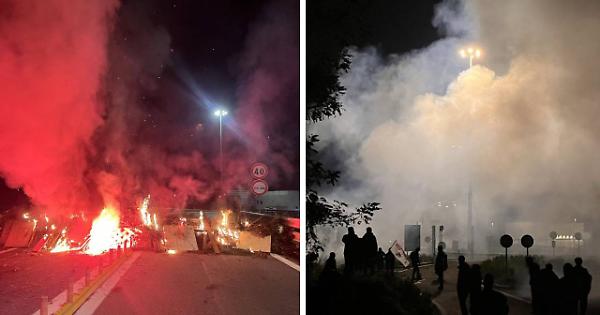 Erano quasi duecento gli antagonisti, che hanno dato alle fiamme gli sbarramenti. Col volto coperto, hanno lanciato bombe carta, sassi e razzi contro la polizia. In risposta sono stati sparati numerosi gas lacrimogeni. I roghi delle barricate sono stati spenti dai pompieri, permettendo così al Reparto mobile di avanzare. Ma solo dopo tre ore, quando le forze dell'ordine sono riuscite ad entrare nei terreni e il presidio è stato sgomberato, è tornata la calma.