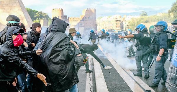 Gli scontri tra manifestanti e polizia a Roma (foto LaPresse)
