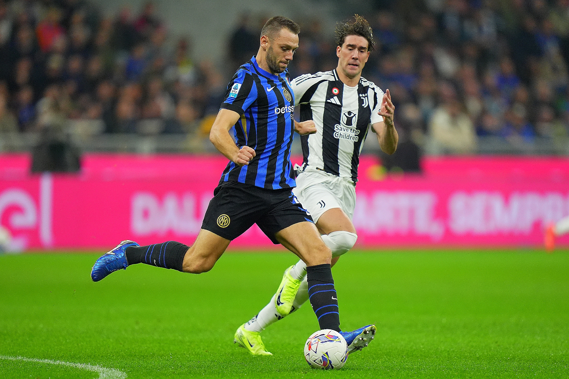 Nel posticipo della nona giornata di Serie A, Inter e Juventus pareggiano con un roboante 4-4. A San Siro va in scena una partita spettacolare e divertente, ma sicuramente meno apprezzata dagli amanti della tattica, considerando le diverse sbavature e imperfezioni delle due squadre. Per l'Inter segnano due reti Zielinski su rigore, Mkhitaryan e Dumfries: i marcatori juventini, invece, sono Vlahovic, Weah e Yildiz per due volte. Nella prima frazione non c'è un attimo di pausa e i gol totali sono addirittura cinque. Al 14' Guida concede il primo rigore della serata, in seguito all'entrata in ritardo di Danilo su Thuram: dal dischetto, Zielinski segna alla prima da titolare. La Juve, però, non si lascia abbattere e reagisce immediatamente, sfruttando l'eccessiva staticità della retroguardia interista.