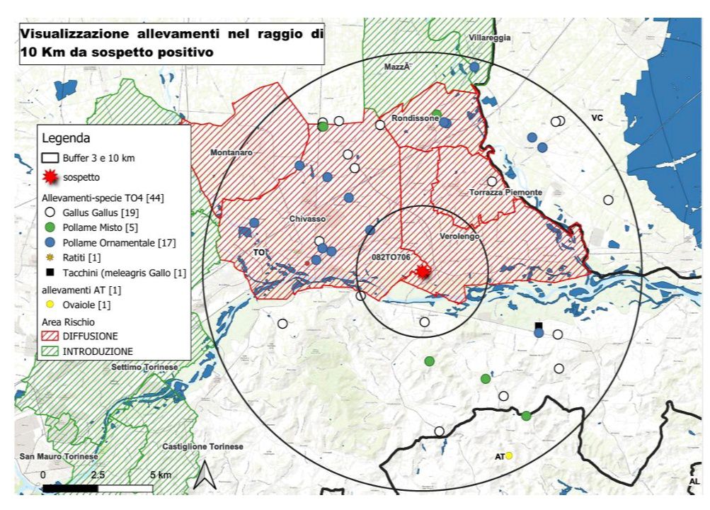 Un focolaio di influenza aviaria è stato scoperto in un allevamento avicolo di Chivasso, in provincia di Torino, dove sono subito scattate le misure di emergenza previste per casi simili.