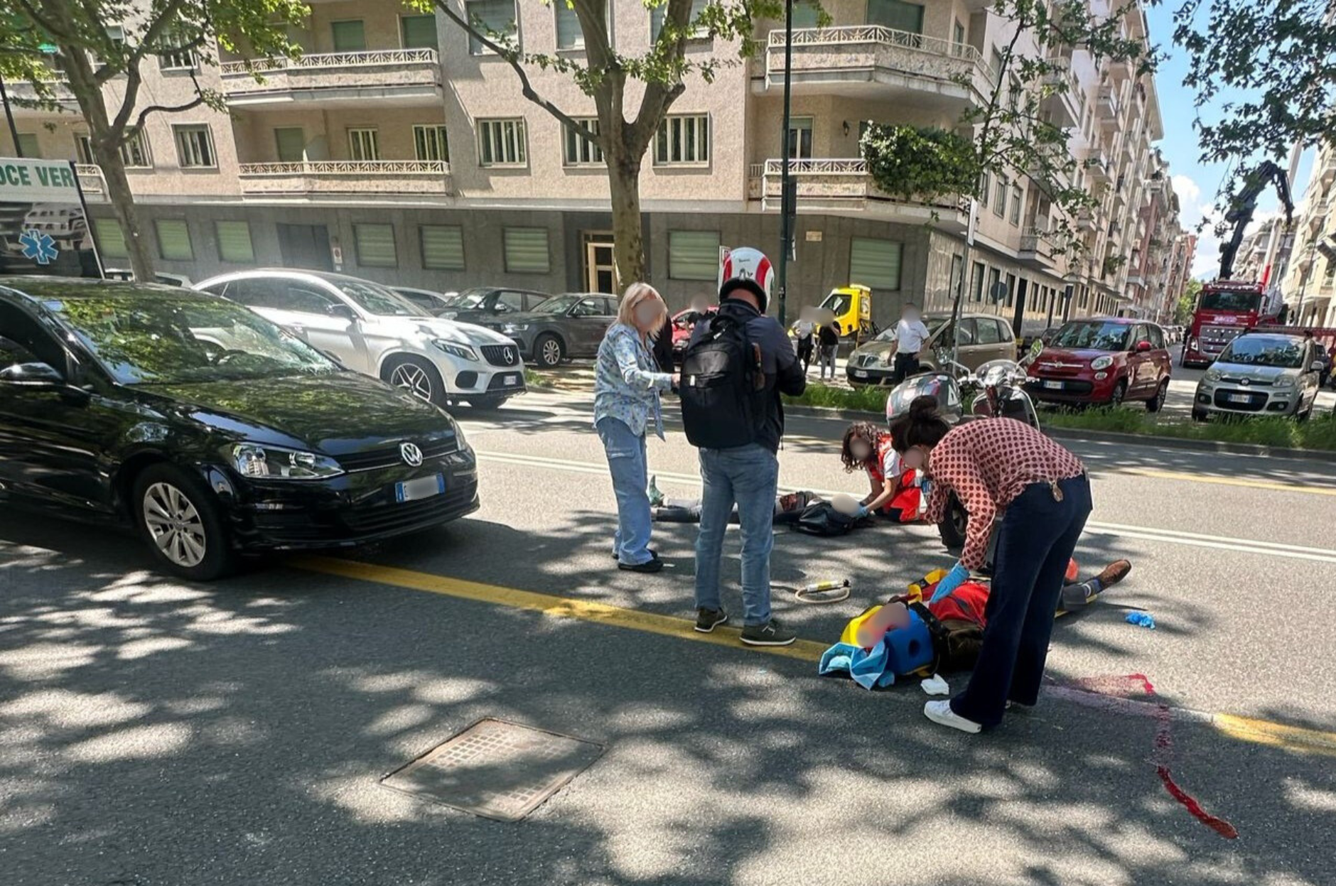 Sulla dinamica sta indagando la polizia municipale, intervenuta insieme alle ambulanze della Croce verde. Dopo il primo intervento da parte dei passanti, i sanitari hanno soccorso i feriti, un uomo sui 70 anni e una donna di 35, scaraventati sull'asfalto dopo l'impatto con l'auto: ora sono entrambi all'ospedale Cto, dove sono stati trasportati in "codice giallo". Illesa la signora alla guida della Golf, una signora di 85 anni.