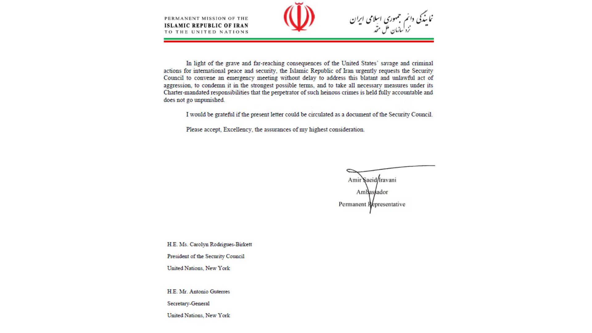 L’Iran ha presentato una richiesta formale alle Nazioni Unite per la convocazione immediata di una riunione straordinaria del Consiglio di Sicurezza, a seguito dei bombardamenti compiuti dagli Stati Uniti contro alcune delle sue principali installazioni nucleari, situate a Fordow, Natanz e Isfahan.