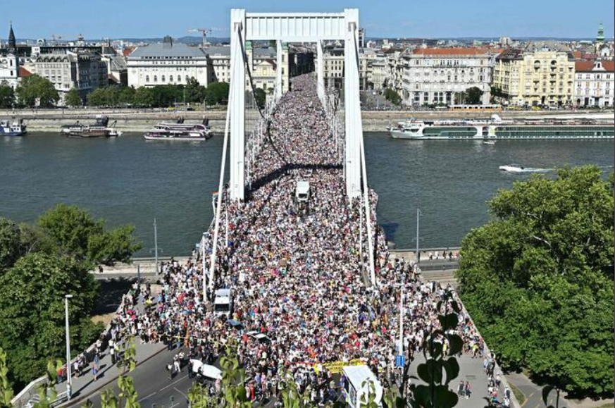 Anche una folta delegazione di deputati ed eurodeputati del centrosinistra europeo si è unita alla manifestazione. Presenti anche politici italiani, tra cui Elly Schlein, che ha commentato: «Siamo qui per la libertà e la democrazia. Tu non puoi vietare l’amore per legge. Non puoi cancellare l’identità delle persone, il nostro corpo, siamo persone abbiamo diritti. Vietare il pride è una violazione dei diritti costituzionali europei». Infatti, su “minaccia” del governo di Viktor Orbán, i partecipanti rischiano fino a un anno di carcere. La deputata italiana, insieme a un gruppo di manifestanti, ha intonato “Bella Ciao”.