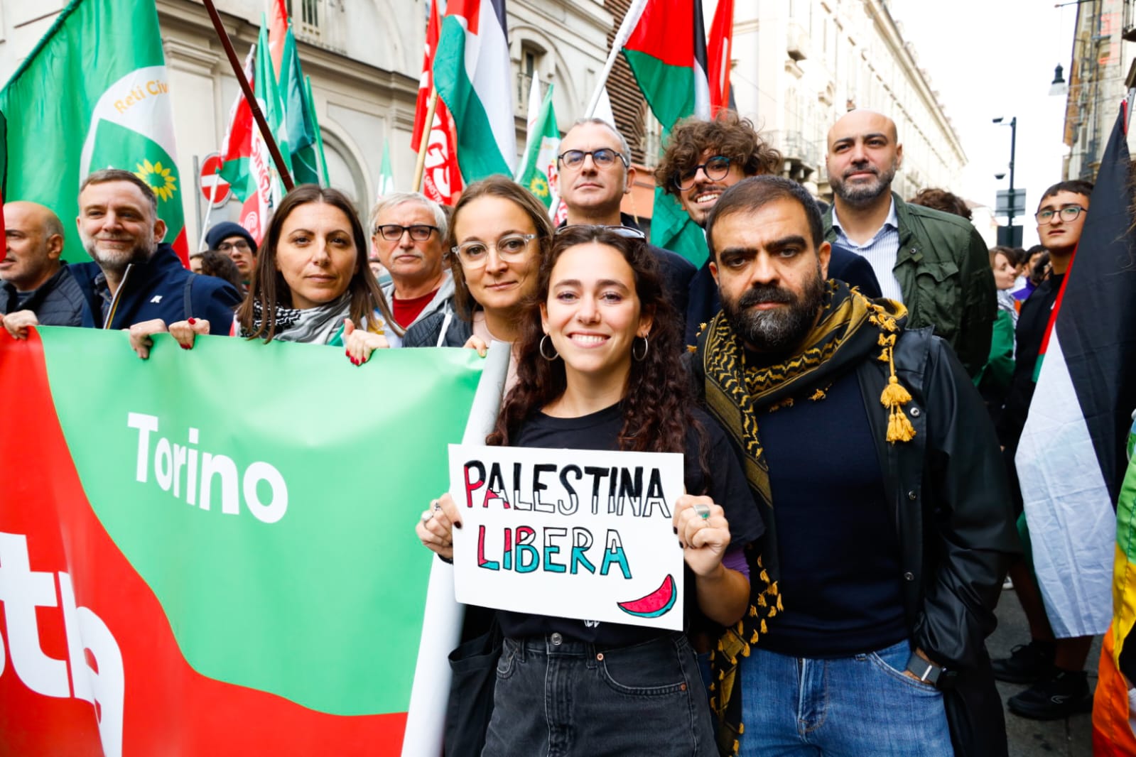 Sulla stessa linea anche i rappresentanti di Sinistra Ecologista, la capogruppo in Consiglio comunale Sara Diena e il consigliere Emanuele Busconi, che hanno ribadito la loro presenza nelle piazze torinesi: «Anche oggi come Sinistra Ecologista siamo in piazza per ribadire la nostra vicinanza al popolo palestinese e agli attivisti e alle attiviste della Global Sumud Flotilla che hanno compiuto un gesto eroico per denunciare il genocidio, per portare aiuti e solidarietà a un popolo che esiste e resiste e che sono stati illegittimamente fermati da Israele in acque internazionali. Di fronte alle accuse infamanti sollevate dal governo, la società civile risponde unita e consapevole di quale sia la parte giusta della storia: il corteo è più lungo del weekend».