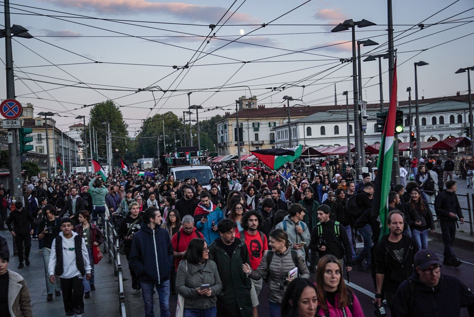 Da lì verso Porta Palazzo. Il corteo ha continuato su corso Regina Margherita, bloccando la circolazione all’uscita del sottopasso e imboccando il tratto che passa sotto corso Principe Oddone. Lungo il percorso si sono uniti altri manifestanti: al momento, almeno 5 mila in corteo, ma il numero è in crescita. Qualcuno si ferma nei controviali, ferma le auto, discute. Il traffico rallenta, si ferma, riparte a singhiozzo. Dietro gli striscioni, molti volti giovani: universitari, collettivi, sigle antagoniste. Ma anche lavoratori, docenti, migranti. Sventolano le kefiah, si scandiscono slogan contro “il genocidio a Gaza”, contro “le responsabilità dell’Occidente”. È il punto di caduta di una giornata cominciata la mattina, tra cortei studenteschi e sindacati in piazza.