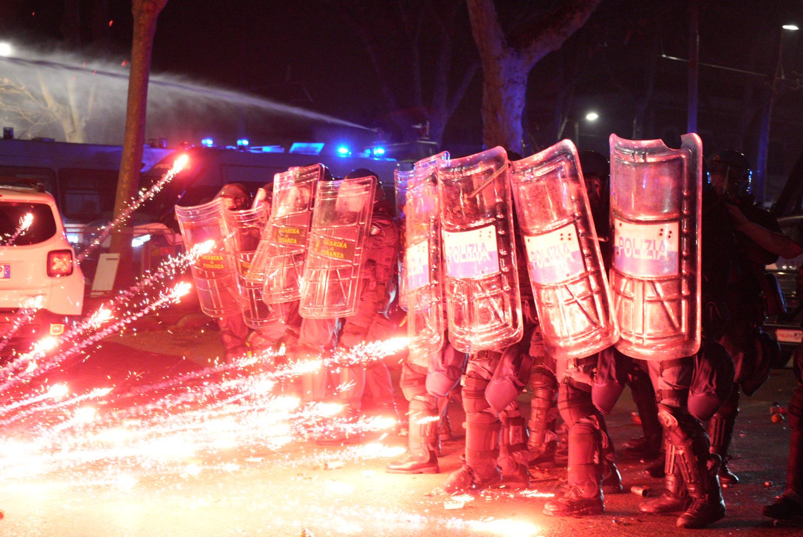 I reparti rispondono con idranti e lacrimogeni. Gli scontri seguono una dinamica a elastico: avanzamenti, arretramenti, nuovi assalti. È in questa fase che un mezzo del Reparto Mobile viene dato alle fiamme mentre è in movimento, con a bordo l’assistente capo coordinatore Luigi Marchese, esposto a un rischio grave e immediato.