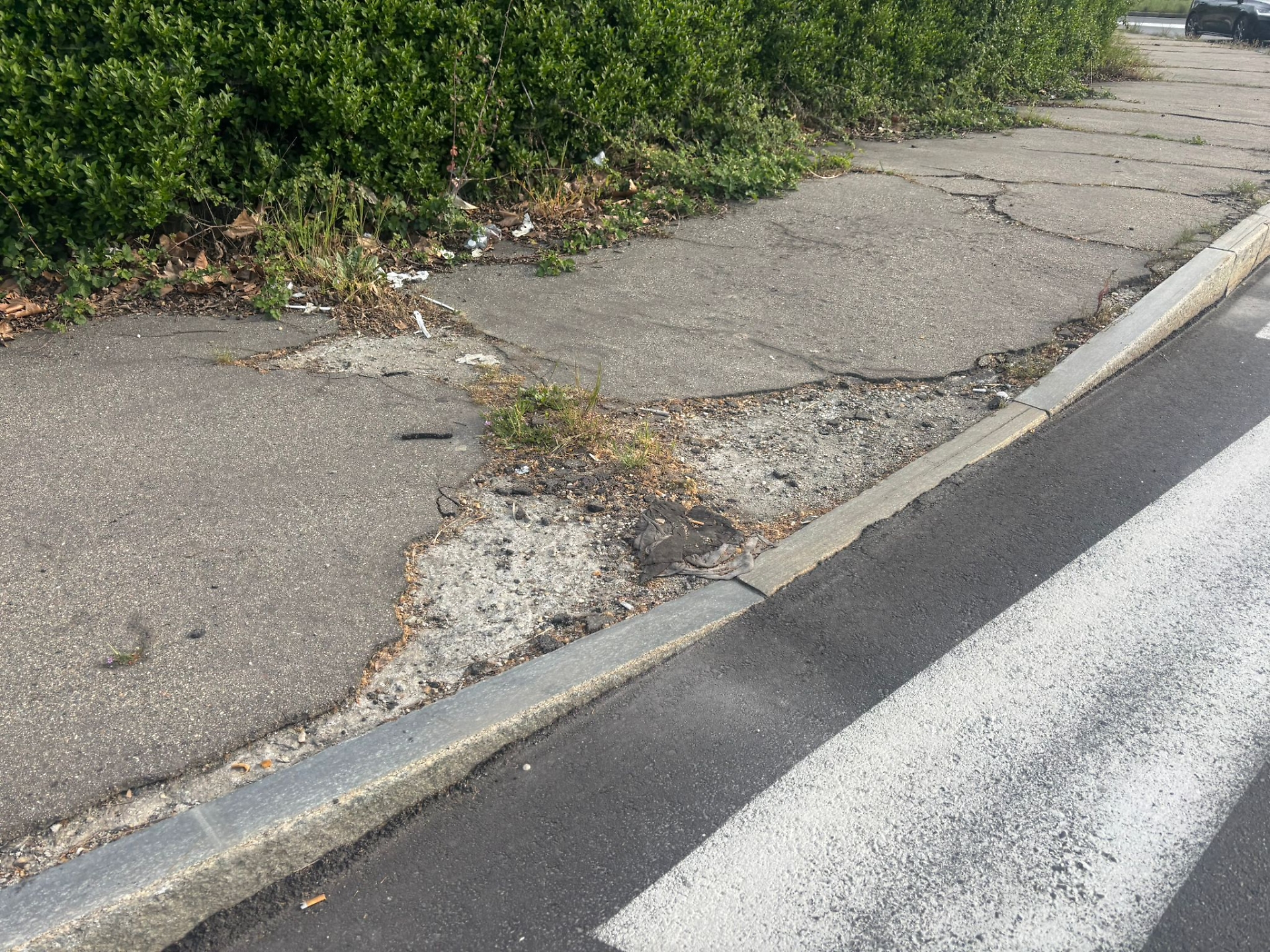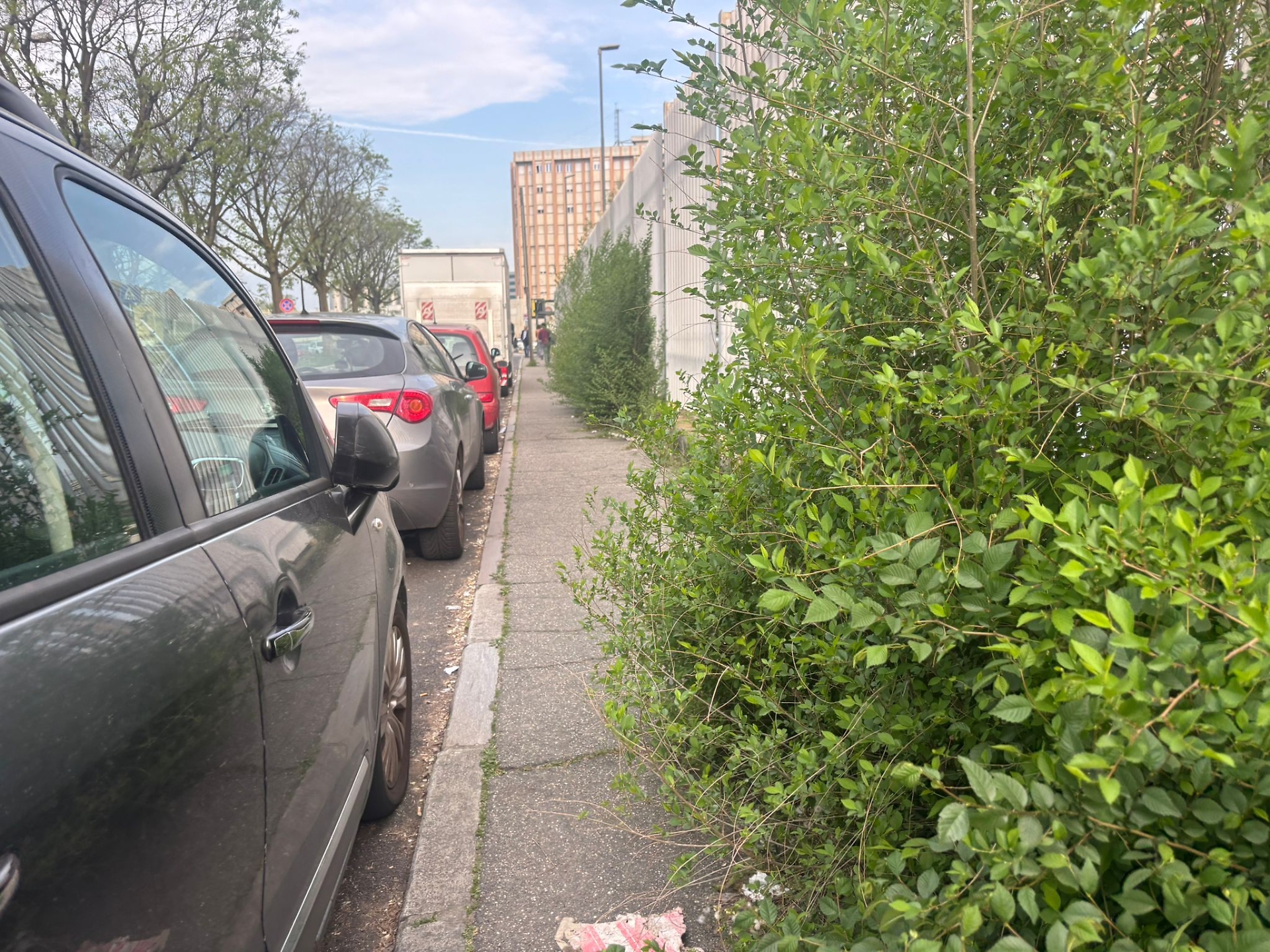 Anche qui le strisce pedonali sono assenti. A incroci dove le macchine arrivano dritte dalle tangenziali - insomma, non è che proprio vadano piano... - e dove i semafori sono pure spenti. Segno della croce e via, si passa all’altro lato della strada. Possibilmente con scarpe dalle suole idonee a un trekking. Non sono buche quelle dei marciapiedi delle Vallette. Sono crateri che, fotografati da vicino, potrebbero essere spacciati per dettagli di immagini prodotte sulla Luna. Artemis? No, periferia di Torino. E dire che gente ne passa. Si, perchè un terzo dei detenuti della prigione torinese riceve visite regolari. Poi c’è chi dentro ci lavora e sceglie di spostarsi in autobus anzichè in macchina. E la chicca vera è quella delle foreste sui marciapiedi. C’è da sentirsi un pò Tarzan, un pò Jane (pure Cita) a passarci in mezzo. Gli arbusti occupano tutto lo spazio dove il pedone dovrebbe muoversi. Che si fa? Si cammina per strada? Nemmeno in senso contrario rispetto alle automobili.