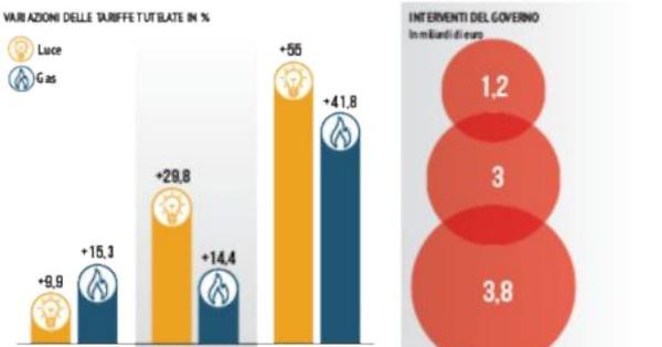 L’aumento per un’azienda della ceramica con 20.790 kWh annui sarà del 254%, da un costo materia prima di 1.798 euro a 6.372 euro, mentre per il gas con 1.921 mc mensili l’aumento sarà addirittura del 358%, passando da un costo medio mensile di 436 euro a 2.076 euro. E ancora: un caseificio che consuma 594.462 KWh/anno avrà un aumento del 281%, con costi che passeranno da 42.225 euro a 160.864 euro, mentre per il gas, a fronte di un consumo mensile di 20.112 mc, avrà un aumento del 398%, passando da una spesa media mensile di 4.188 ero a 20.882 euro.