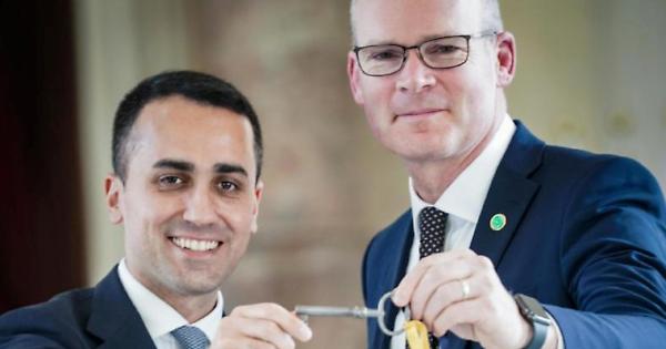 Passaggio della Presidenza tra l’Italia e l’Irlanda Ministro degli Affari Esteri e della Cooperazione Internazionale italiano, Luigi Di Maio; del Ministro degli Affari Esteri dell’Irlanda. 132ma Sessione del comitato dei ministri degli esteri del Consiglio d'Europa presso la Reggia di Venaria reale. Torino 20 maggio 2022 ANSA/TINO ROMANO