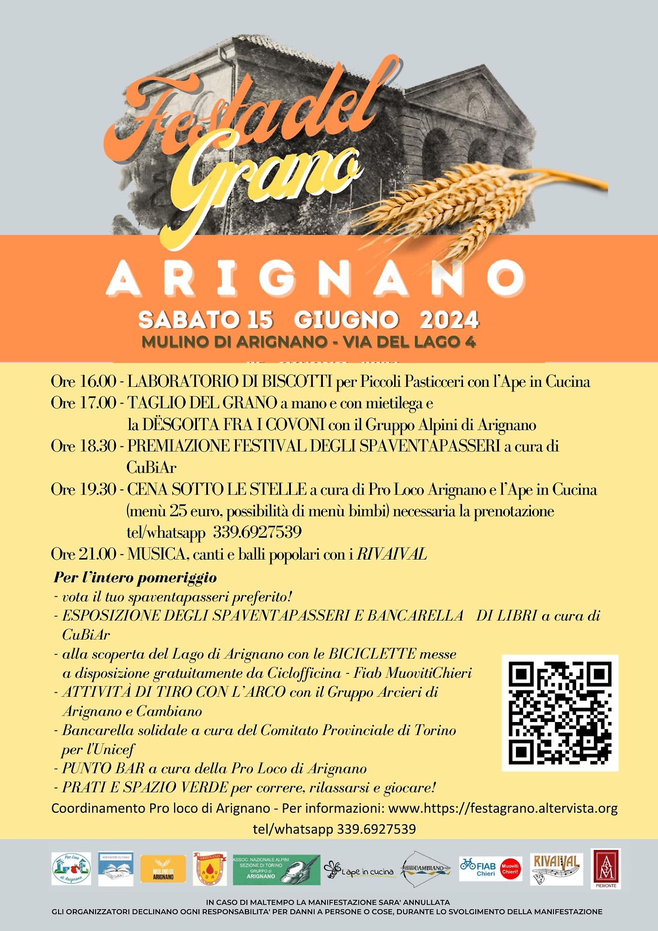 La Festa del Grano, coordinata dalla Pro Loco di Arignano in collaborazione con numerose associazioni locali, offre un programma ricco e variegato.