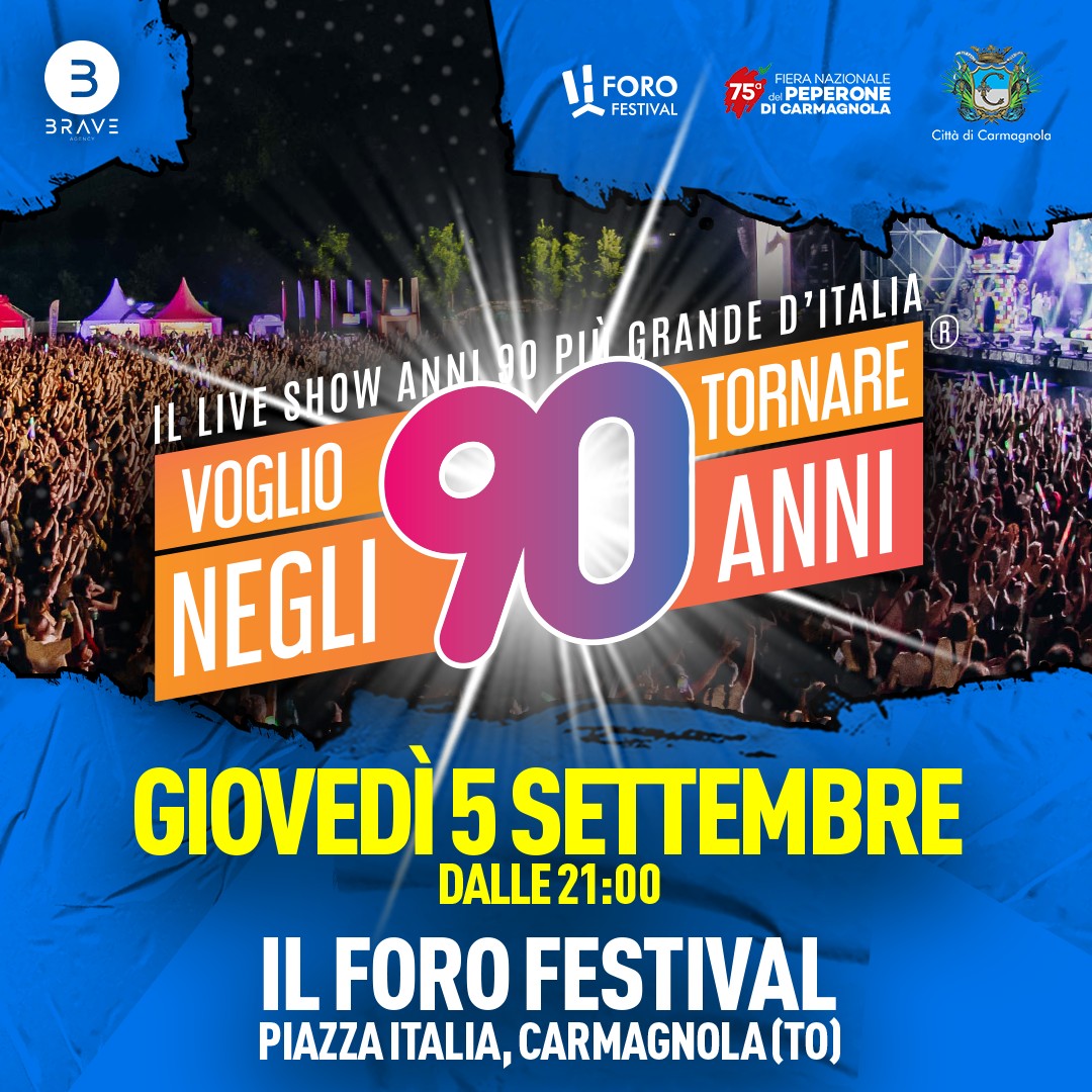 Il 5 settembre, il Foro Festival farà un salto indietro nel tempo con "Voglio tornare negli anni '90". Una serata che promette di far ballare grandi e piccini con le migliori hit di quel decennio. Dj, mascotte, ballerine ed effetti speciali animeranno il palco, creando un'atmosfera di festa che coinvolgerà tutto il pubblico.