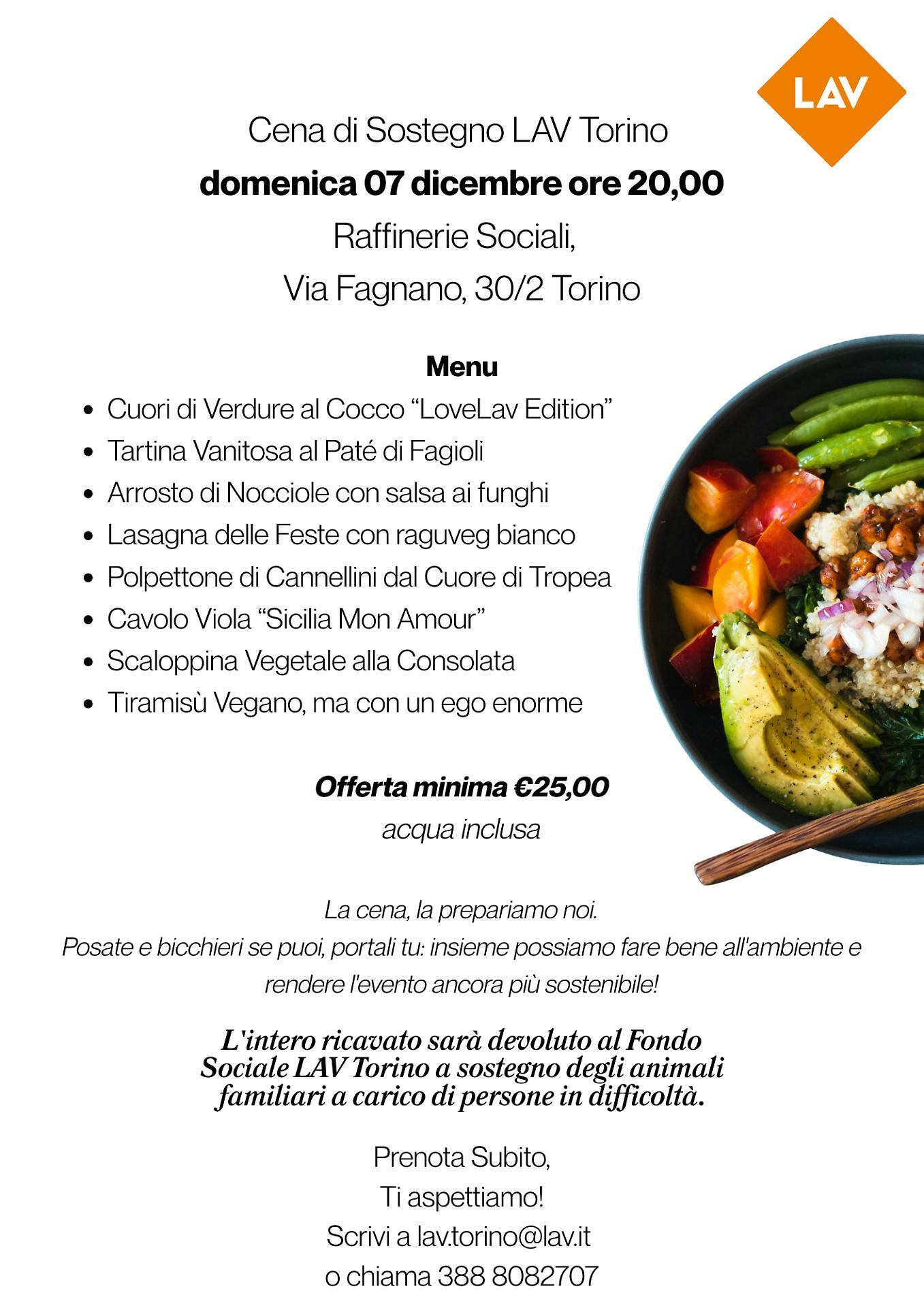 Una tavolata accogliente, sapori creativi e una causa che scalda il cuore: è lo spirito della Cena di Sostegno organizzata da LAV Torino, in programma domenica 7 dicembre alle ore 20 alle Raffinerie Sociali, in via Fagnano 30/2. Un momento di condivisione che unisce buon cibo, impegno civile e solidarietà concreta, con un invito aperto a tutta i cittadini.