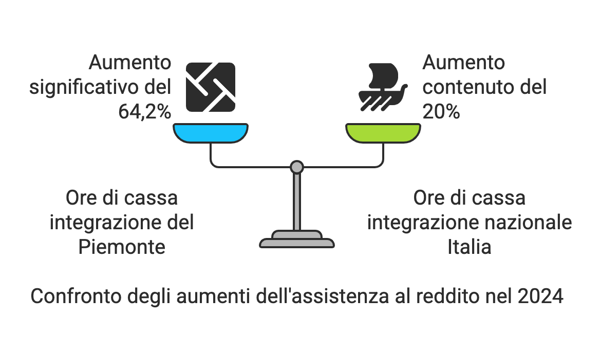 Nel 2024, il Piemonte ha registrato un significativo aumento delle ore di cassa integrazione, arrivando a un totale di 51 milioni ore, con un incremento del 64,2% rispetto all’anno precedente. A questa cifra si aggiungono 1.3 milioni di ore dei fondi di solidarietà, destinati ai lavoratori privi di altri strumenti di sostegno al reddito, per un totale complessivo di 52.4 milioni di ore, con un aumento del 61,2% rispetto alla media nazionale.