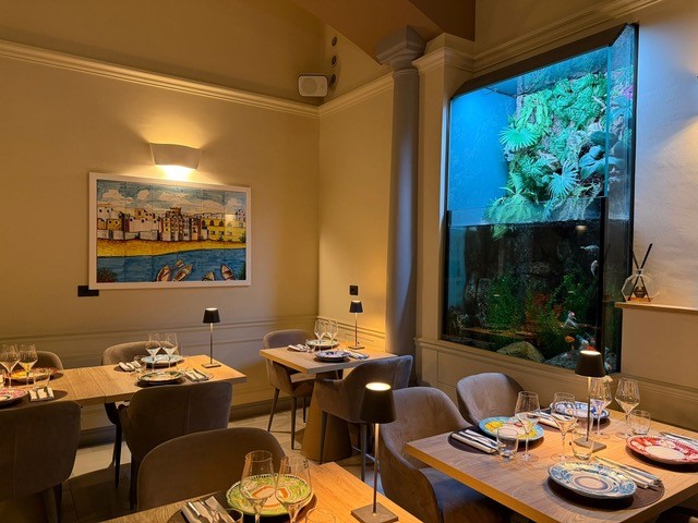 Alcuni esempi? Nei giorni scorsi la cucina ha proposto una palamita con crema parmentier e polvere di capperi e un trancio di ricciola con il suo caramello.