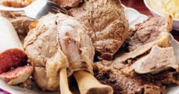 Eccolo, il gran bollito risorgimentale: si compone di sette tagli di vitello, cotti insieme in una grande pentola. Essi sono: groppa o capocollo o tenerone, gamba o stinco, pancia o scaramella o biancostato o grasso-magro, culatta, cappello da prete o arrosto della vena o sottopaletta, punta col suo fiocco, ed infine la rolata; seguono sette “ammennicoli”, tagli più piccoli da cuocere separatamente: la testina, la lingua, lo zampino, la coda, la gallina, il cotechino e la lonza; ed infine sette bagnèt, cioè sette salse diverse: due tipi di bagnèt verd, una salsa rossa, una salsa al miele e noci, una salsa al rafano, una cugnà e una mostarda di frutta. Il tutto, con dei contorni di verdure (almeno quattro, per la ricetta tradizionale: patate o carote lesse, spinaci al burro, biete al burro e cipolle in agrodolce).