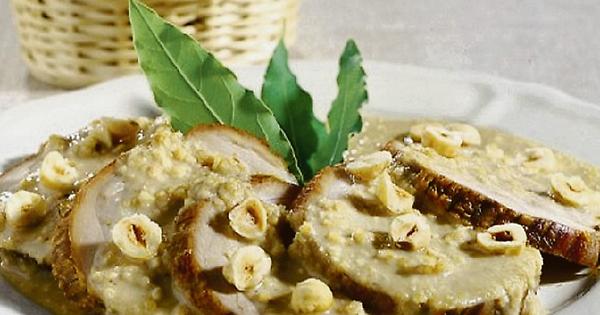 Uno dei prodotti piemontesi più famosi al mondo, la nocciola non si accosta perfettamente solo agli innumerevoli dolci tradizionali, come i baci di dama o i celeberrimi gianduiotti, ma anche alle carni. L’arrosto di vitello con salsa alle nocciole è un tipico piatto piemontese, conosciuto soprattutto nel territorio delle Langhe, dove i noccioli crescono rigogliosi. È enorme l’espansione che la coltivazione di questo frutto ha conosciuto nel nostro paese negli anni sessanta e settanta a seguito di richieste sempre maggiori del prodotto nell’industria dolciaria locale. In Piemonte, la varietà più conosciuta è sicuramente la “Tonda Gentile delle Langhe Igp”, che grazie alle sue proprietà uniche, tra cui la buona conservabilità e la facilità di lavorazione, è diventata una protagonista di innumerevoli ricette. Oggi la produzione è concentrata nelle province di Cuneo, Asti e Alessandria, tra le colline delle Langhe, del Roero e del Monferrato. In moltissimi ristoranti di queste zone è facile trovare nel menù l’arrosto di vitello con salsa alle nocciole, ma non è difficile riproporlo a casa nostra. Lasciate la carne a temperatura ambiente per circa un’ora prima di cucinarla, quindi massaggiatela bene con il sale grosso affinché si insaporisca maggiormente prima della cottura. Affettate finemente la cipolla e fatela soffriggere in una casseruola con il burro; unite la noce di vitello e fatela rosolare da tutte le parti a fiamma vivace. Sfumate con il marsala. Regolate di sale, aggiungete il latte e le nocciole tritate grossolanamente. Coprite con un coperchio e cuocete per circa un ora e mezza; se necessario, durante la cottura, aggiungete altro latte. Togliete la noce di vitello dalla casseruola e mettetela da parte; lasciatela intiepidire leggermente quindi tagliatela a fette spesse circa mezzo centimetro. Portate ad ebollizione il fondo di cottura dell’arrosto; nel frattempo preparate il roux per rendere cremosa la vostra salsa: sciogliete a fuoco lento il burro, togliete dal fuoco il pentolino e amalgamate la farina setacciata. Rimettete sul fuoco e fate cuocere giusto il tempo necessario a togliere il sapore di farina. Versate il roux nel fondo di cottura, mescolate e fate sobbollire per qualche minuto. Servite l’arrosto con la salsa alle nocciole e, se volete, qualche nocciola tagliata a metà.