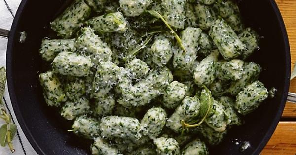 Versate gli spinaci strizzati all’interno di un contenitore stretto e alto, aggiungete un poco di latte, le uova, regolate di sale, pepe e noce moscata e frullate tutto fino a ottenere una crema liscia. Versate quindi la crema di spinaci all’interno della ciotola con il pane e mescolate. Aggiungete la farina e il pangrattato e terminate l’impasto lavorandolo brevemente con le mani anche per sentirne la consistenza. Lasciatelo riposare qualche minuto. Inumidite due cucchiai e prelevate una porzione d’impasto, circa mezzo cucchiaio. Trasferite il primo mucchietto su un canovaccio ben infarinato e proseguite in questo modo per tutti gli altri. Si andranno a formare delle quenelle. Spolverizzate con poca farina i mucchietti e lavorateli uno ad uno con le mani, in modo da ottenere delle palline. Cuocete gli gnocchi in acqua salta bollente, pochi alla volta e conditeli in un tegame con burro, salvia, formaggio o speck.