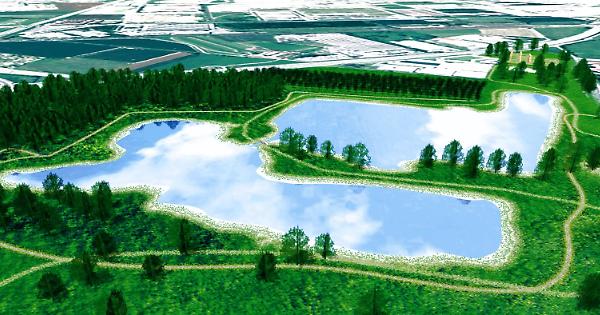 PRATO SEMINATO E TERRENO RISISTEMATO Per quanto concerne il resto dei lavori, con interventi di ingegneria naturalistica si è anche provveduto alla modulazione e al contenimento delle pendenze delle sponde nella aree intorno ai laghetti, mentre il terreno è stato sistemato e il prato seminato per realizzare il parco estensivo agricolo.