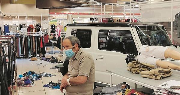 «Sembrava un terremoto». Invece era un fuoristrada che ha spaccato l’uscita d’emergenza del centro commerciale ed è entrato per una decina di metri nel negozio Cm moda: un cliente ha fatto in tempo a gettarsi in avanti ed evitare di essere travolto, un altro l’ha scampata per un pelo: «La jeep si è fermata a 50 centimetri da lui: ce la siamo cavata con ferite lievi ma poteva essere una strage».