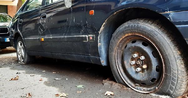 Una vecchia Seat Ibiza di colore grigio, senza la ruota posteriore sinistra, ha un cartello con sopra scritto “vendesi”. Ma gli inquilini sostengono che è in vendita da molti anni, «e non la comprerà mai nessuno». Così giace nel cortile, ed è solamente una delle tante macchine abbandonate nel comprensorio Atc di via Sospello. Qui, alle case popolari di Borgo Vittoria, c’è sempre un gran via vai di macchine, spesso guidate da persone che non sono residenti nei palazzi. Alcune vetture, poi, vengono lasciate dove capita. C’è una Toyota Carina, un modello non più in produzione da vent’anni, con lo specchietto rotto e le ruote tutte e quattro sgonfie. E’ nel cortile da un anno e mezzo, e nessuno l’ha mai portata via. E poi ancora una Ford Focus, un’Alfa Romeo 156, un vecchio Opel Frontera. Tutti veicoli abbandonati. Qualcuno da mesi, altri da anni. Senza dimenticare i motorini, anch’essi senza padrone da tempo.